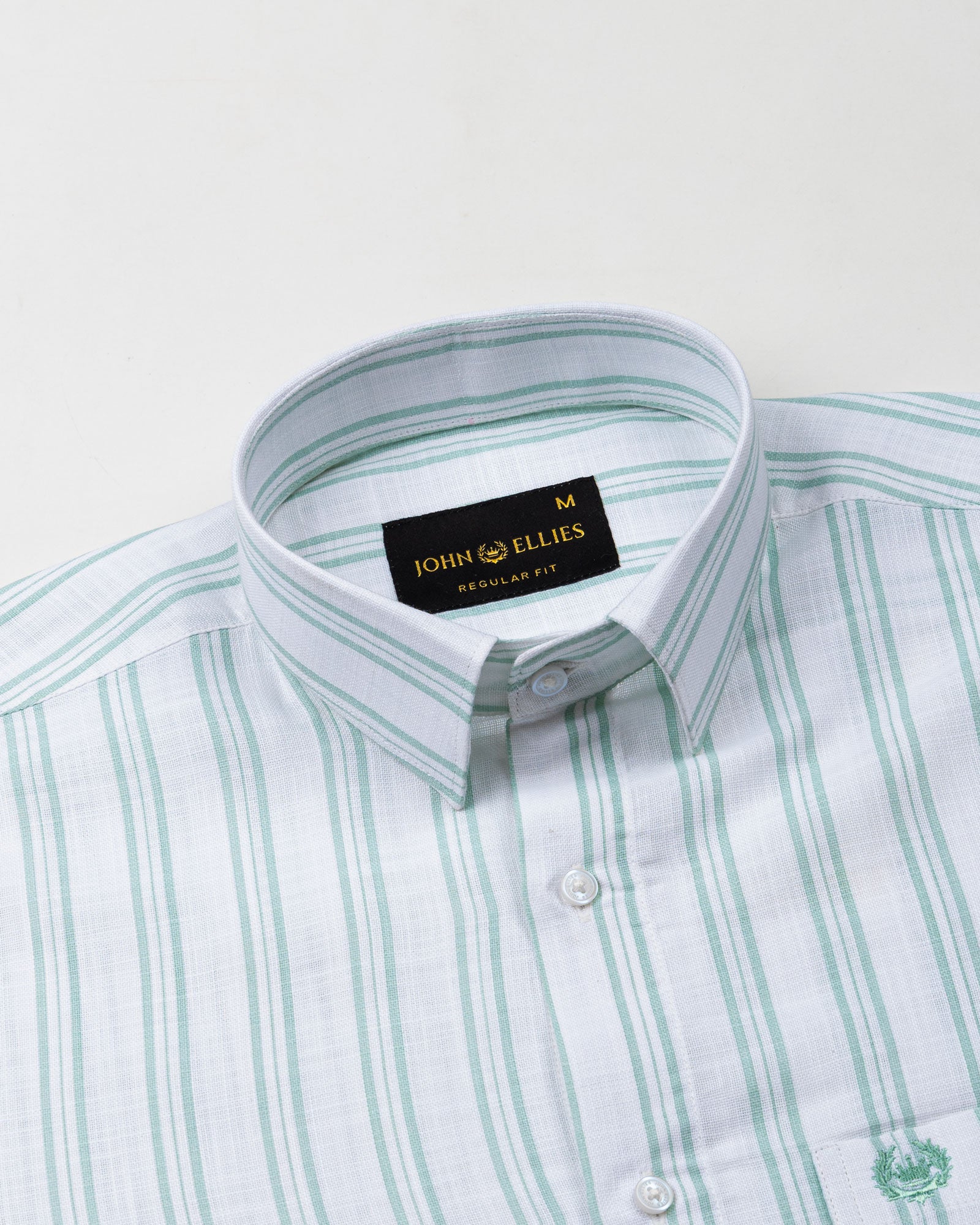 Devon Olive Stripe Linen Blend Shirt - John Ellies