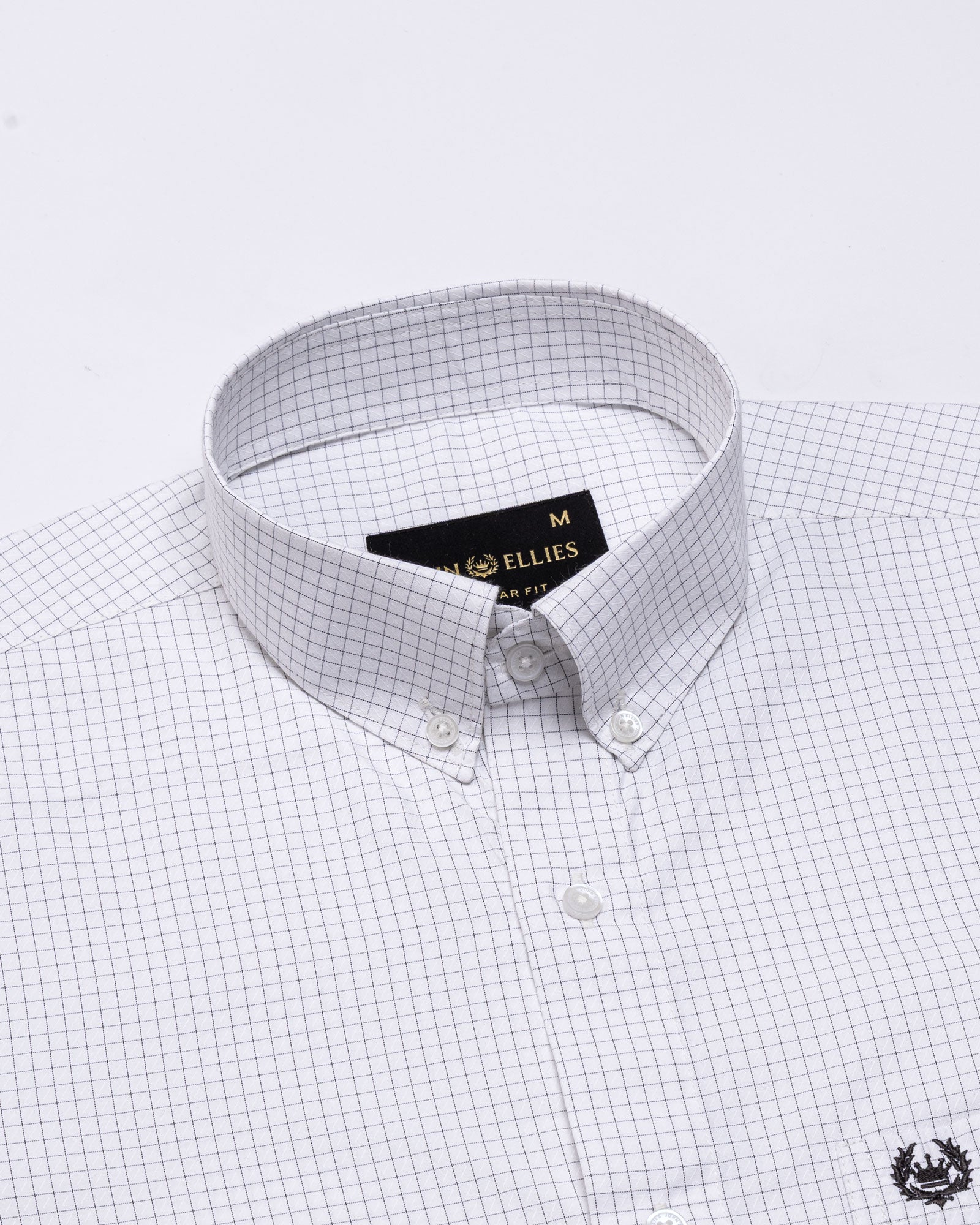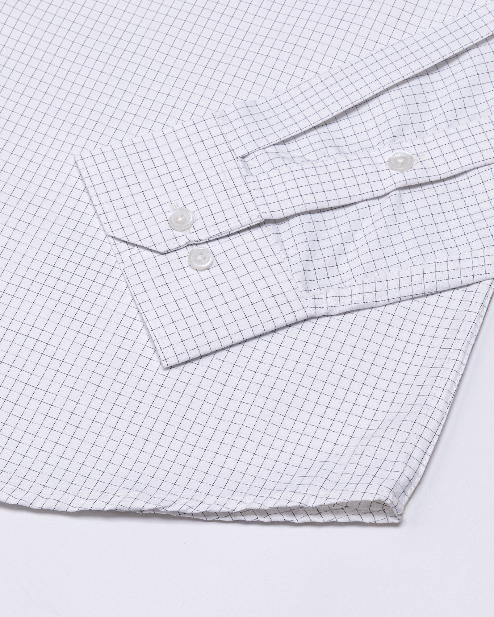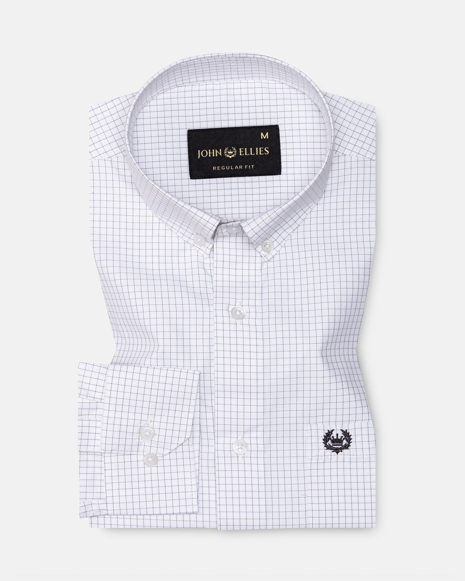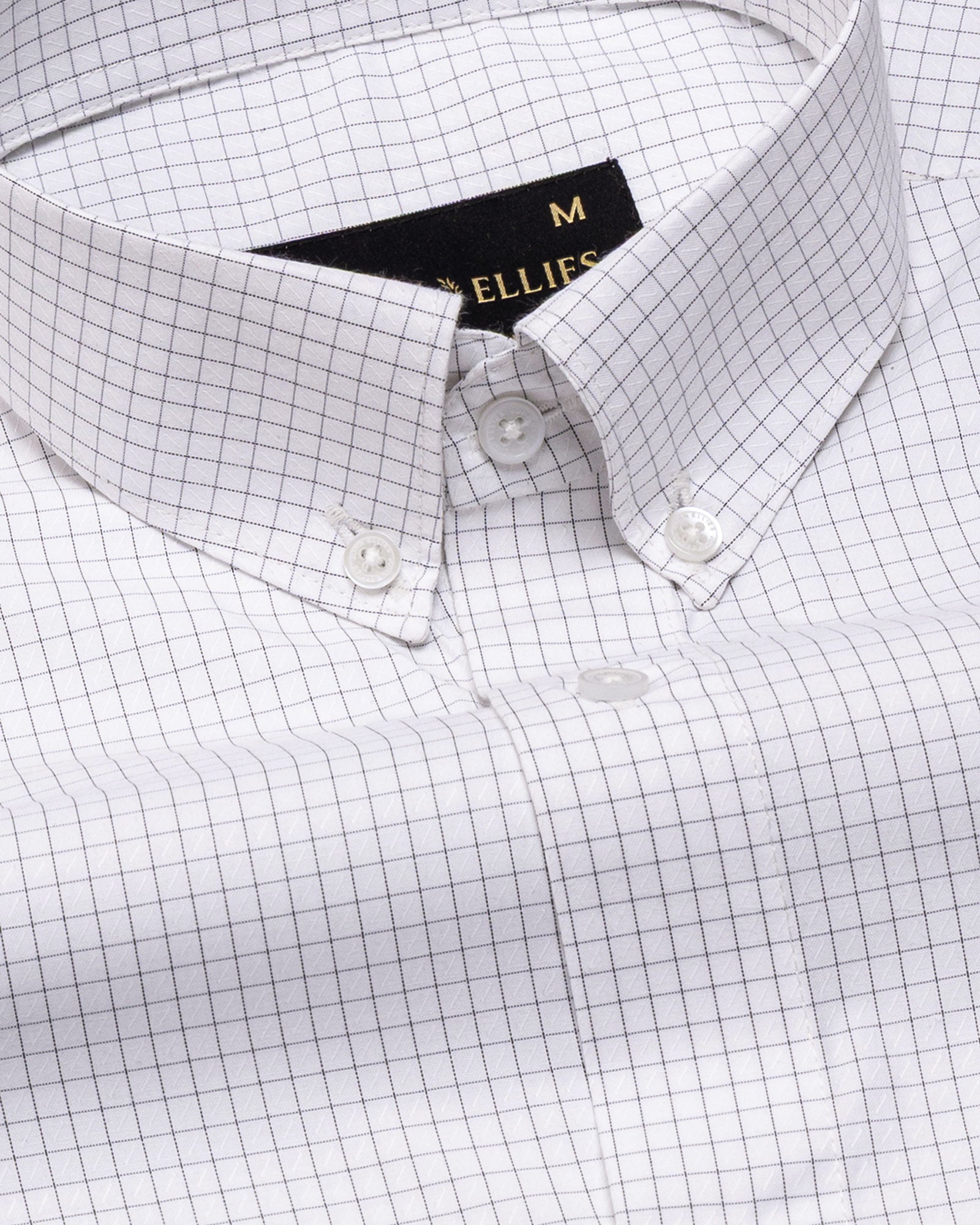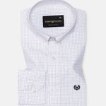 A refined button-down shirt inspired by understated heritage dressing. The crisp white base is detailed with fine micro-checks that create a subtle pattern without overpowering the look. Designed with a button-down collar, clean placket, tonal buttons, structured cuffs, and the signature embroidered crest that completes the piece with a distinguished finish.