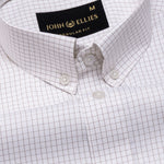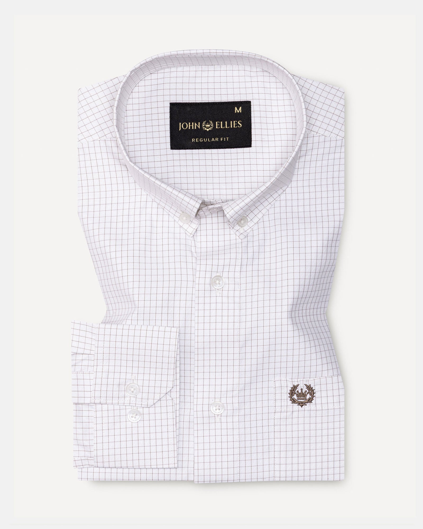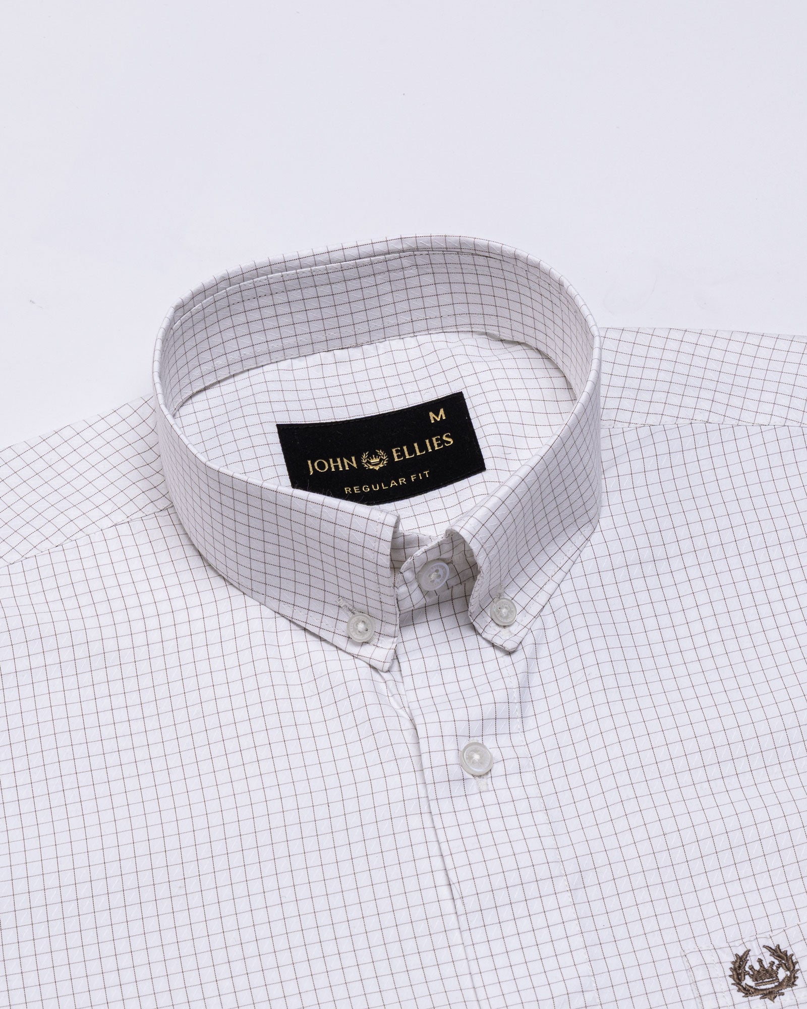 A refined button-down shirt inspired by understated heritage dressing. The crisp white base is detailed with fine micro-checks that create a subtle pattern without overpowering the look. Designed with a button-down collar, clean placket, tonal buttons, structured cuffs, and the signature embroidered crest that completes the piece with a distinguished finish.
