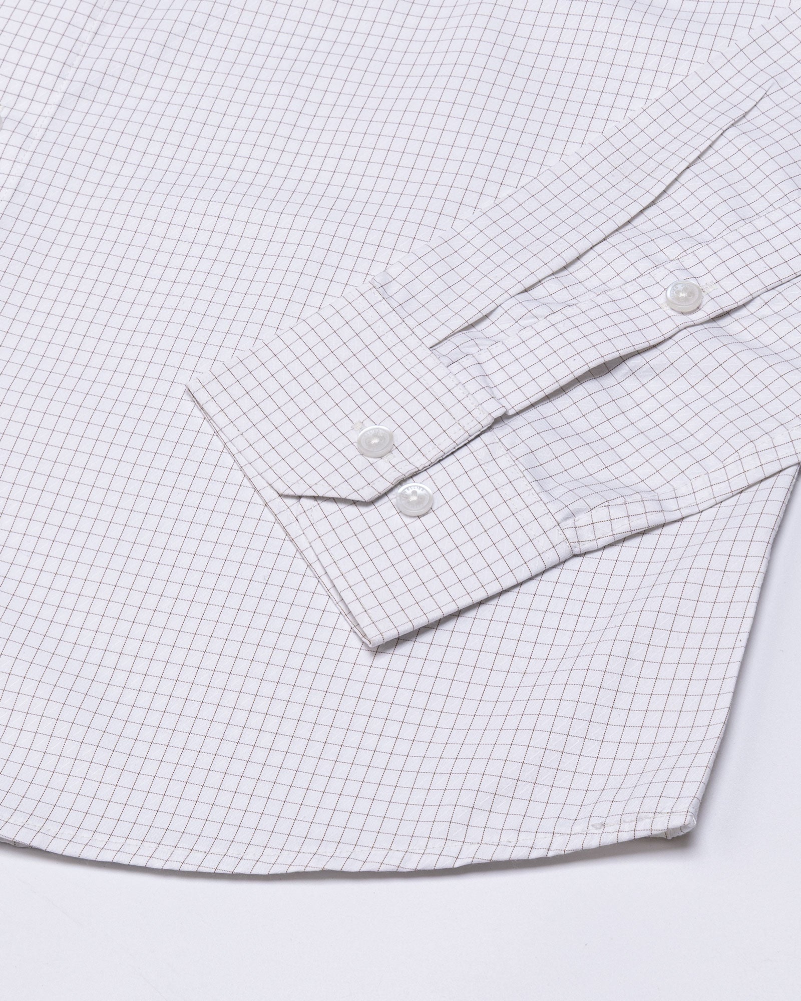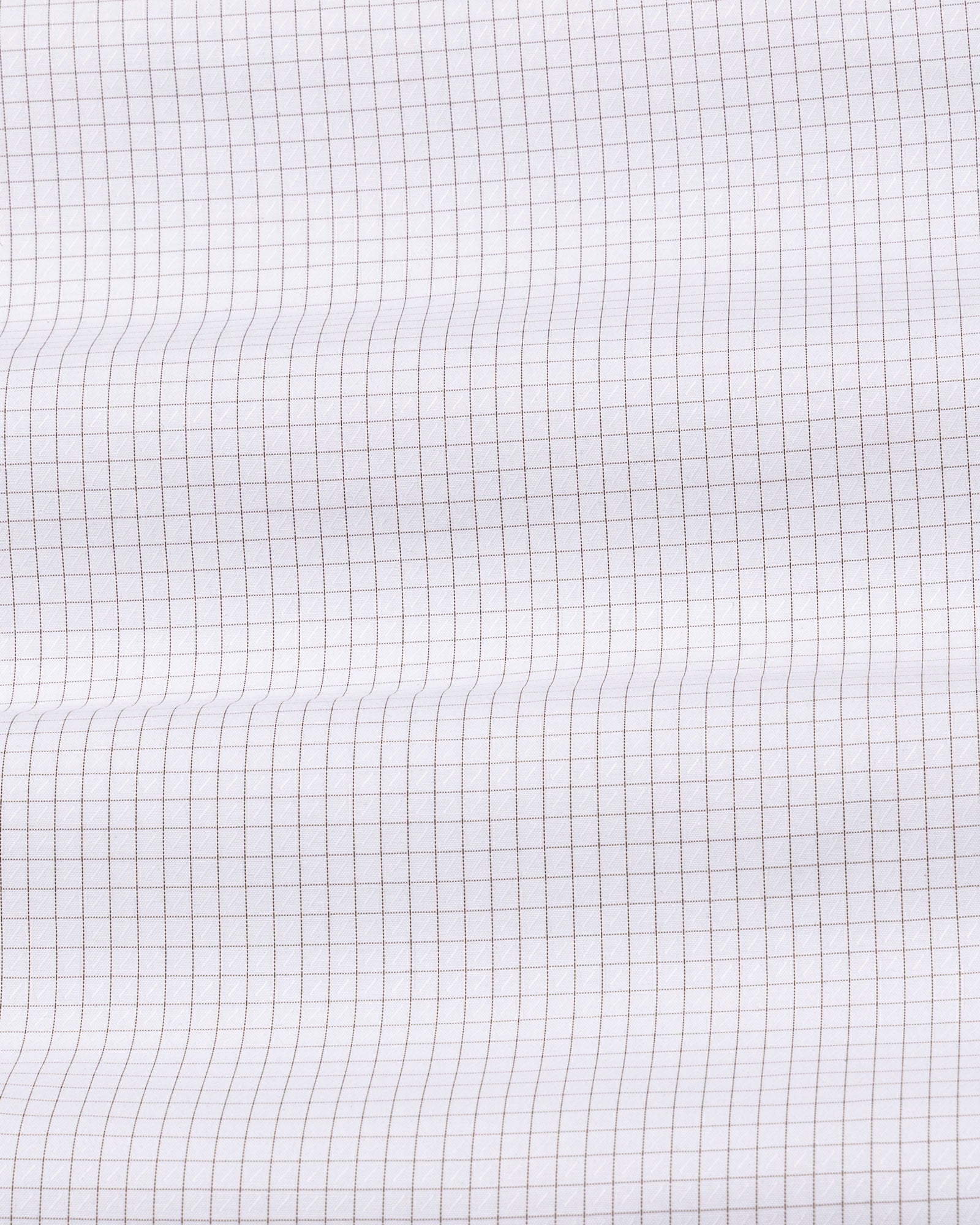 Crafted from cotton, the fabric feels smooth and breathable, ensuring comfort through long hours of wear. Its fine weave enhances the depth of the checks while maintaining a crisp finish that holds its shape and refined appeal throughout the day.
