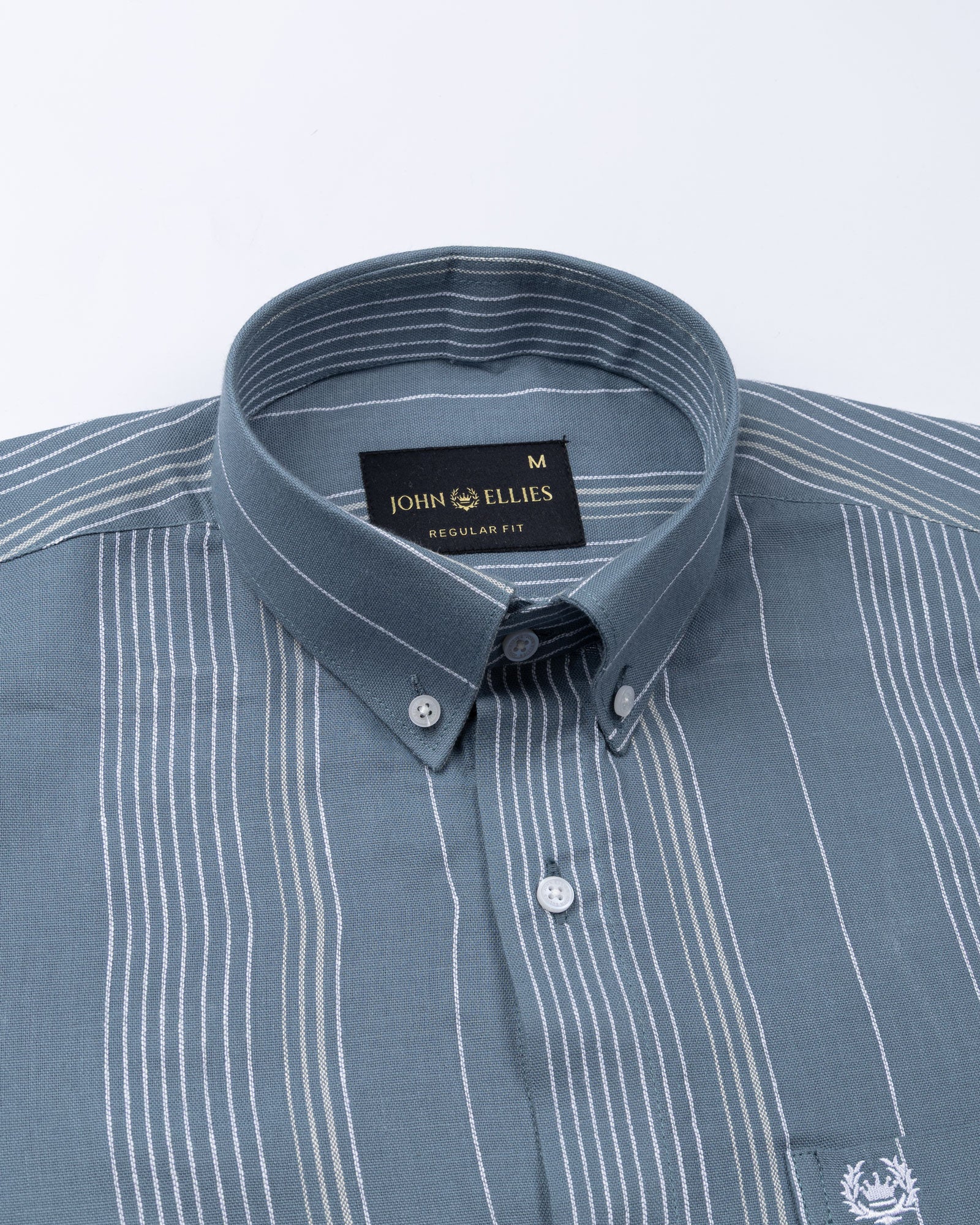 A sharp Oxford cotton shirt designed with a structured button-down collar and vertical stripe detailing for a clean, confident look. The contrast stripe placement on the collar adds subtle character. Finished with matching buttons and a neatly tailored cuff, this shirt transitions effortlessly from business meetings to smart casual settings.