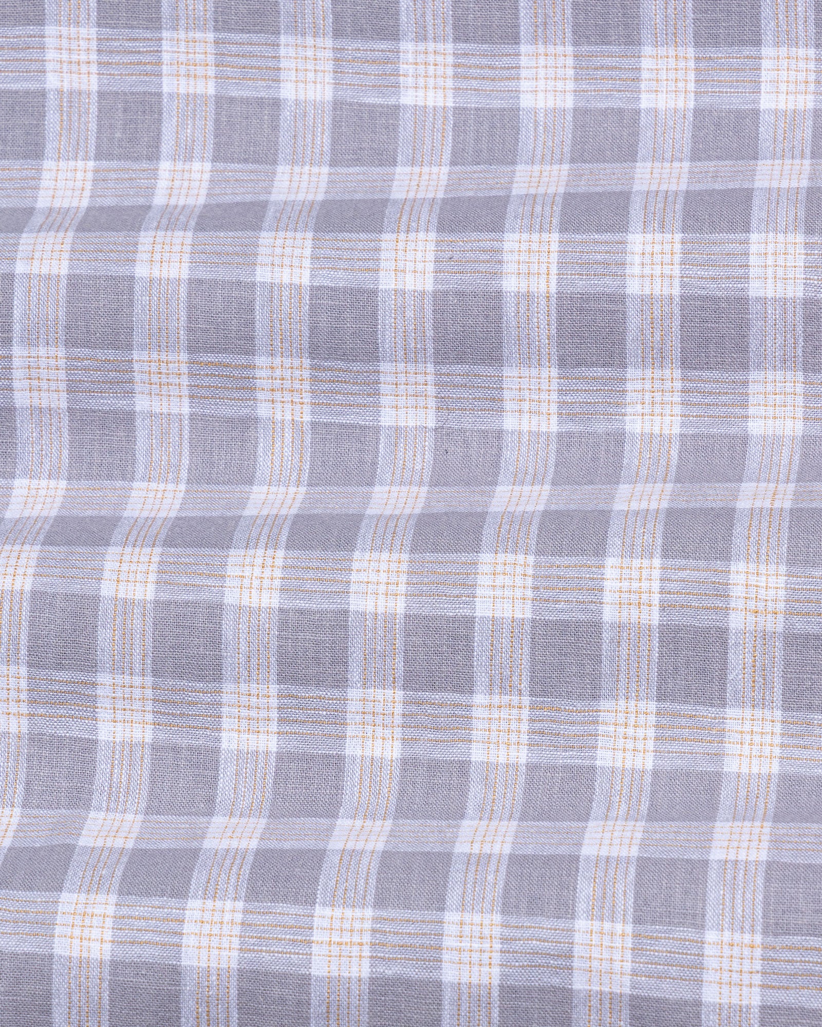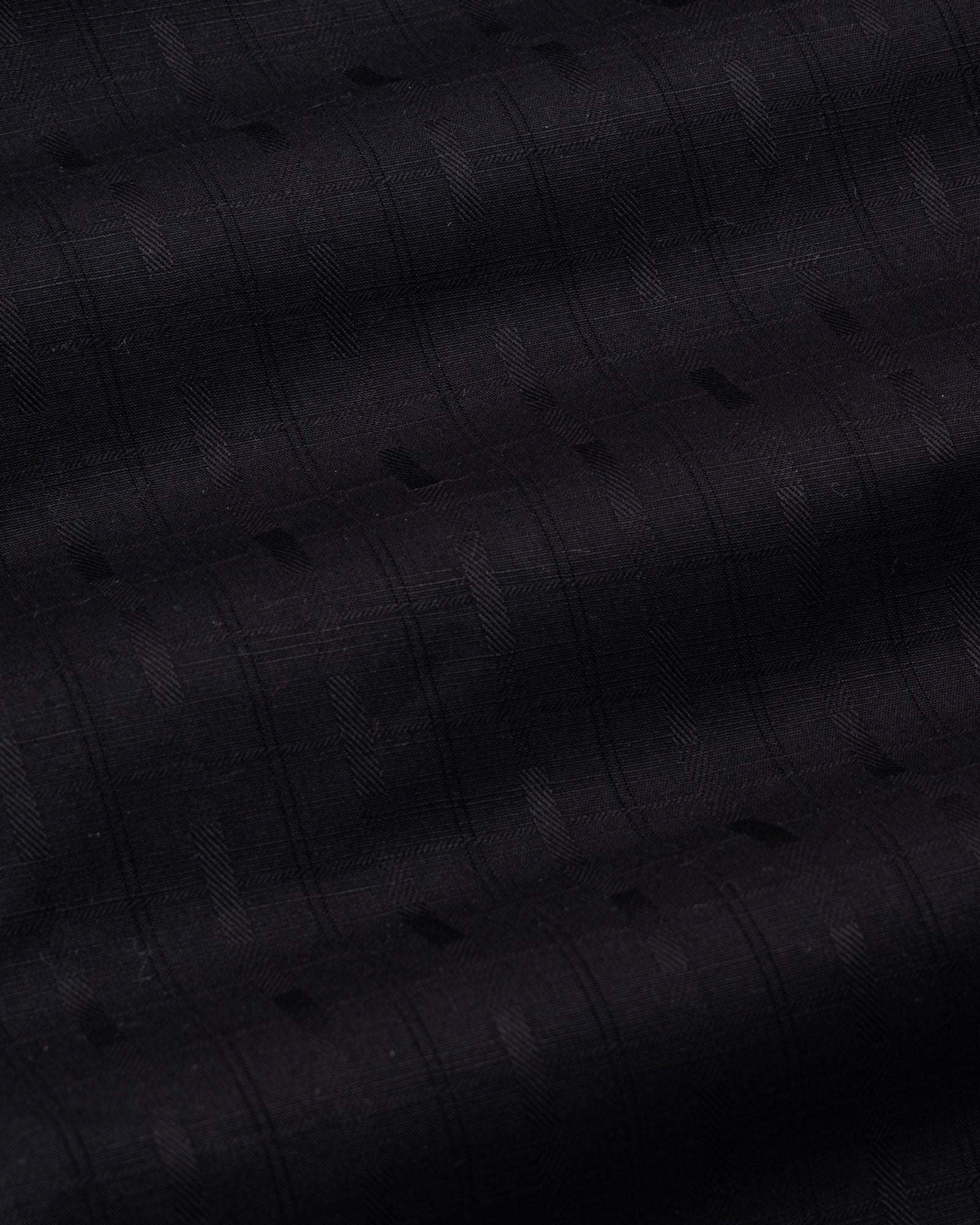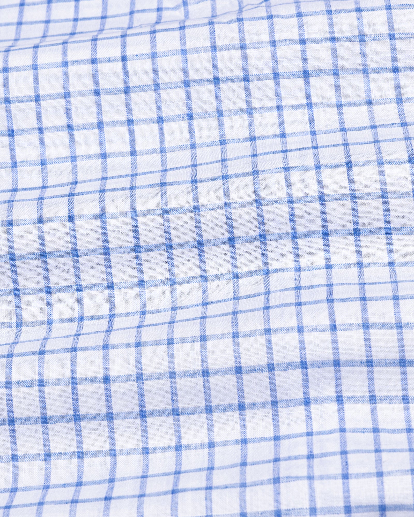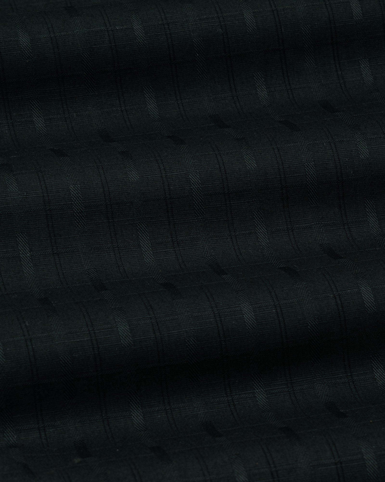 Crafted from textured cotton fabric, it features a subtle weave that enhances the check pattern’s dimension. The fabric feels soft yet substantial, offering breathability, shape retention, and a rich surface character that grows more refined over time.