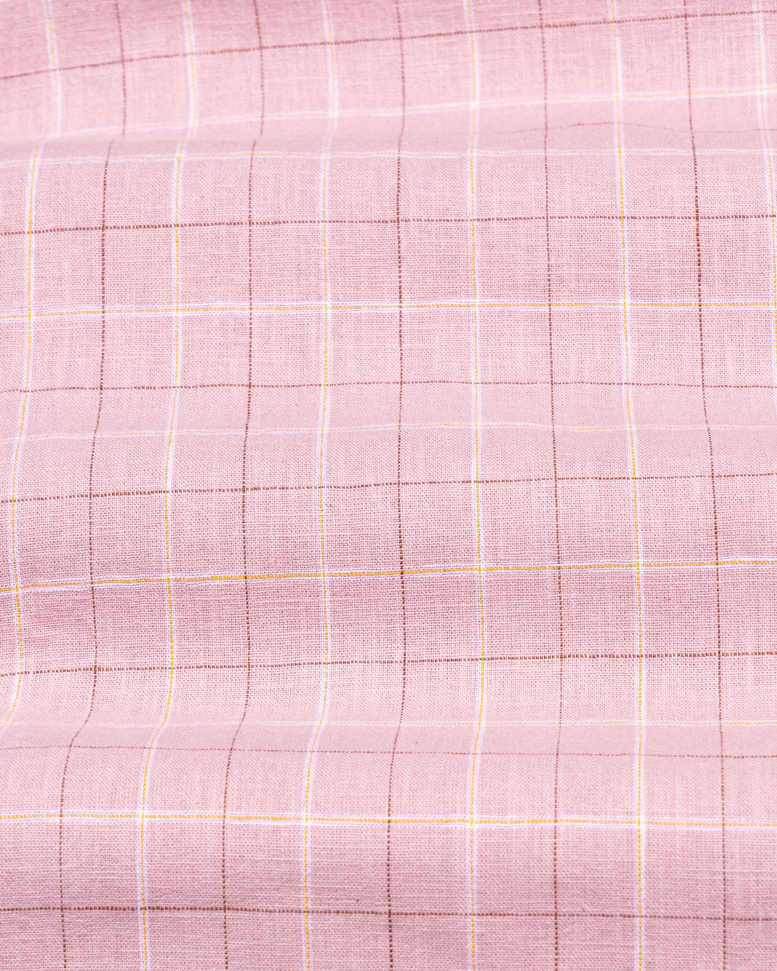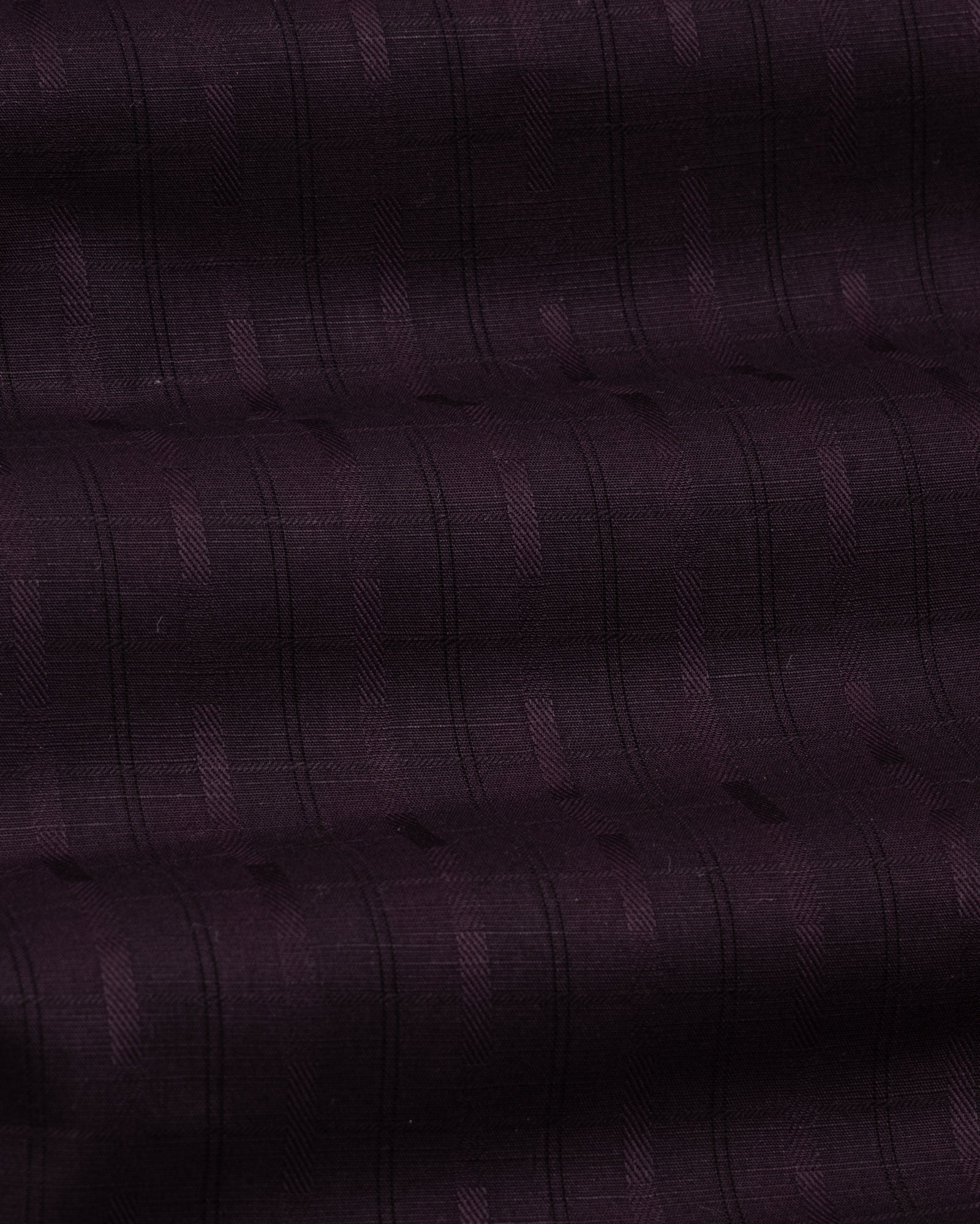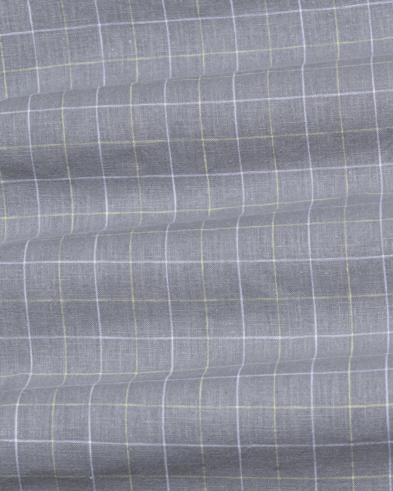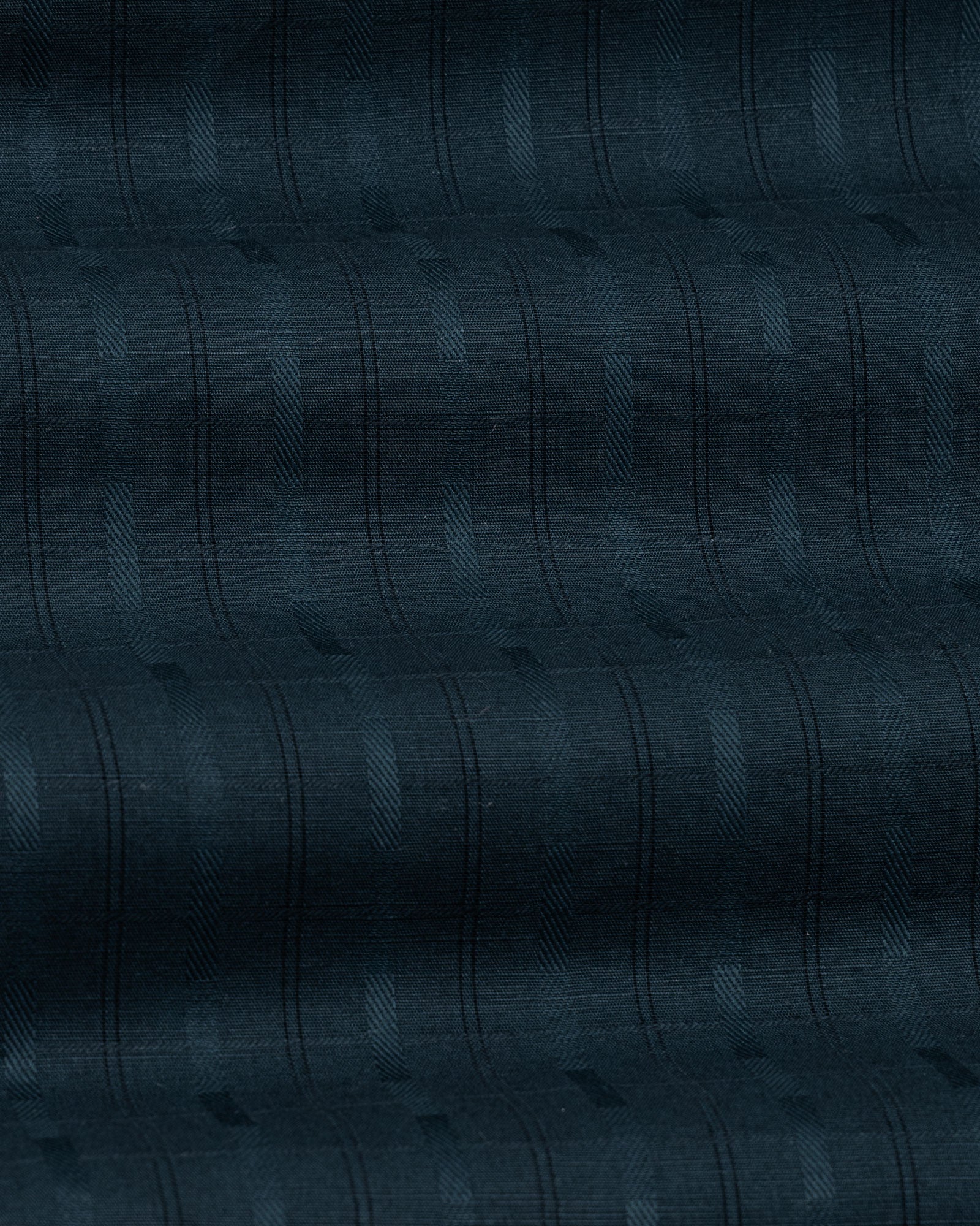 Crafted from textured cotton fabric, it features a subtle weave that enhances the check pattern’s dimension. The fabric feels soft yet substantial, offering breathability, shape retention, and a rich surface character that grows more refined over time.