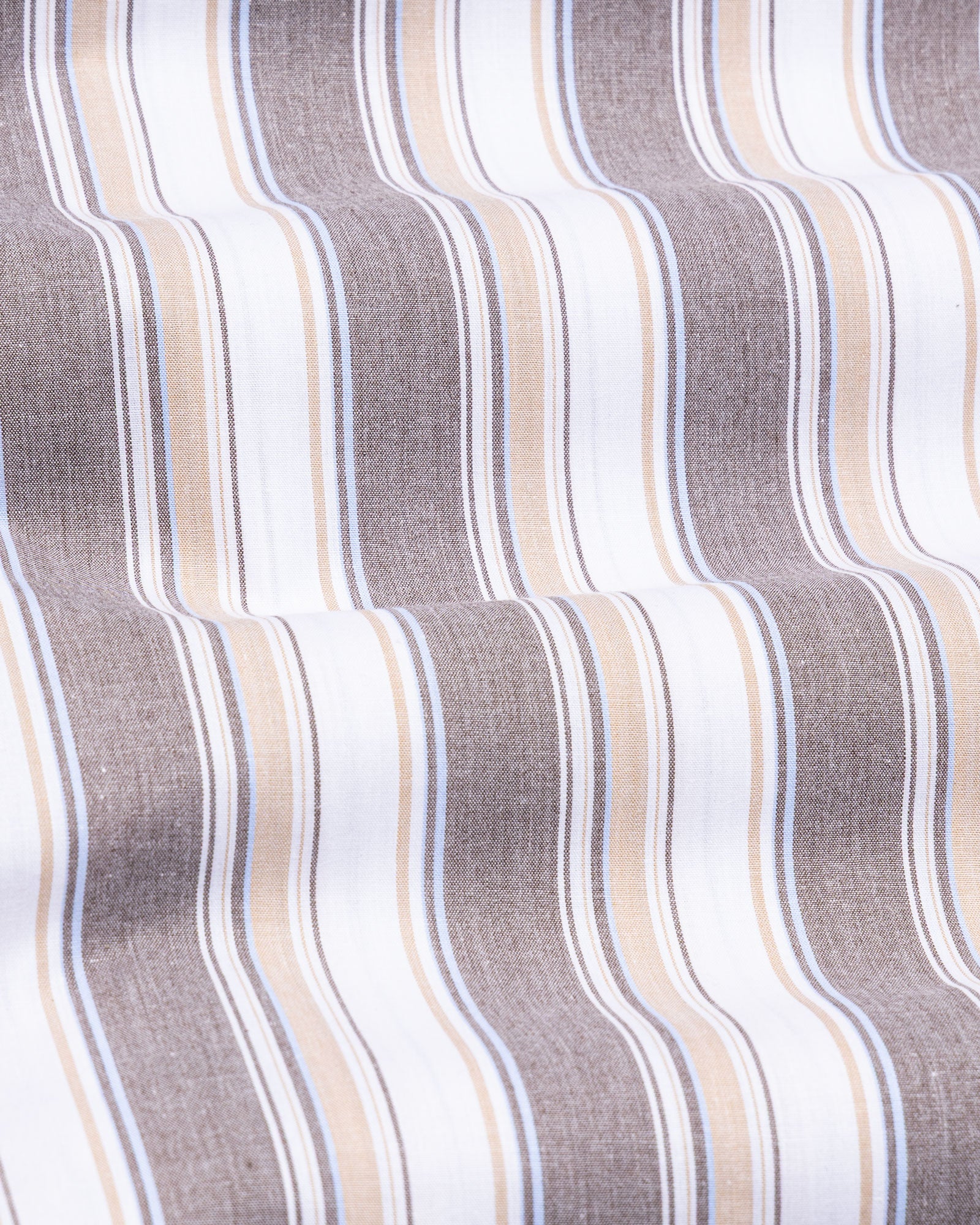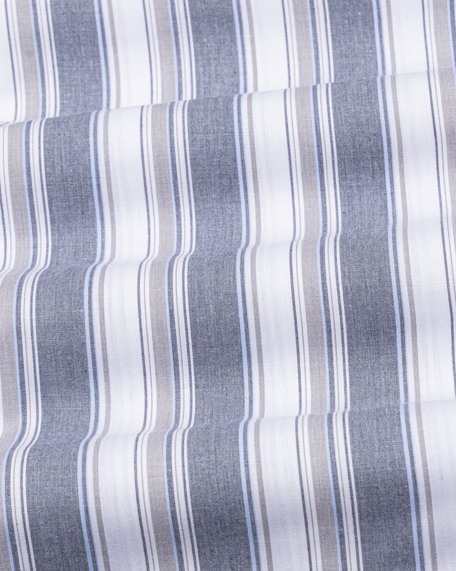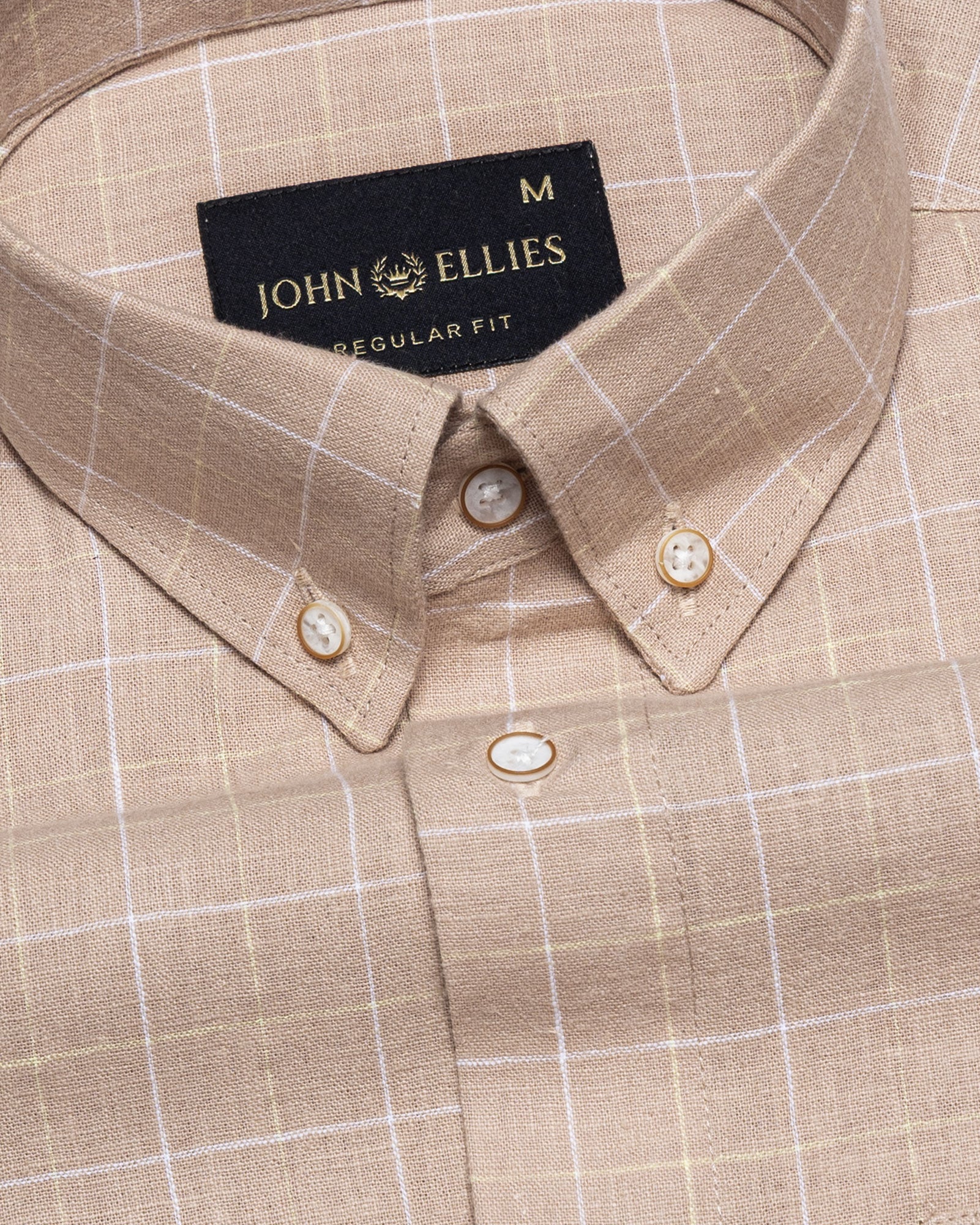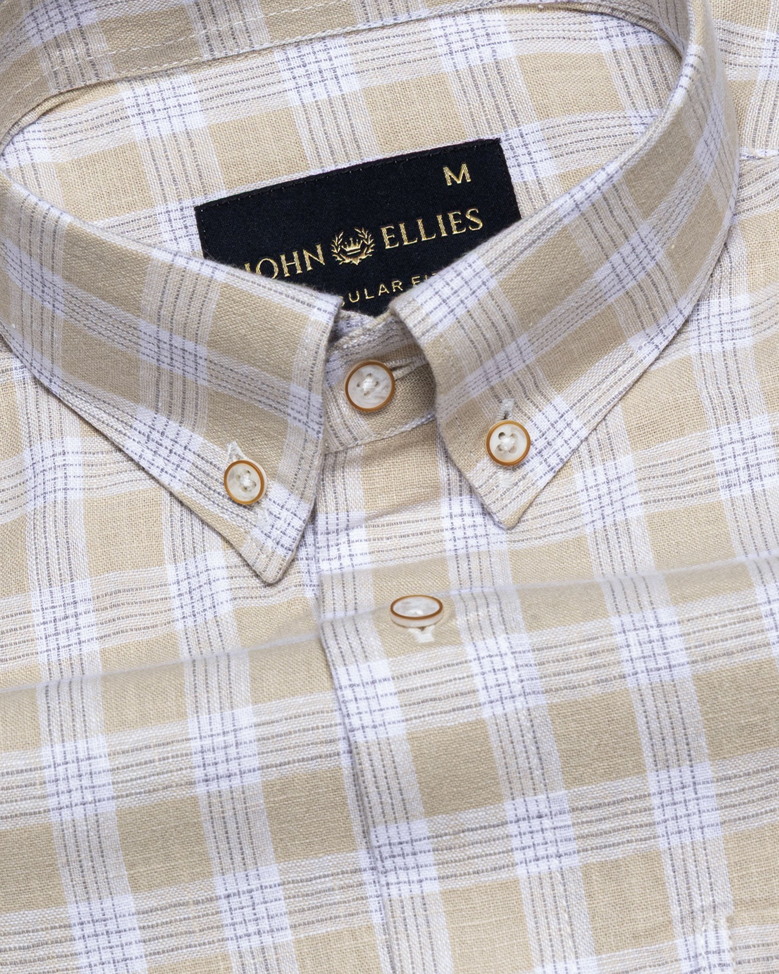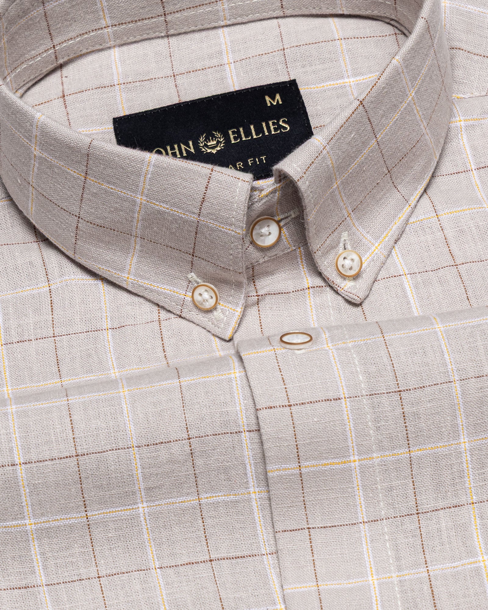Crafted from textured cotton fabric, it features a subtle weave that enhances the check pattern’s dimension. The fabric feels soft yet substantial, offering breathability, shape retention, and a rich surface character that grows more refined over time.
