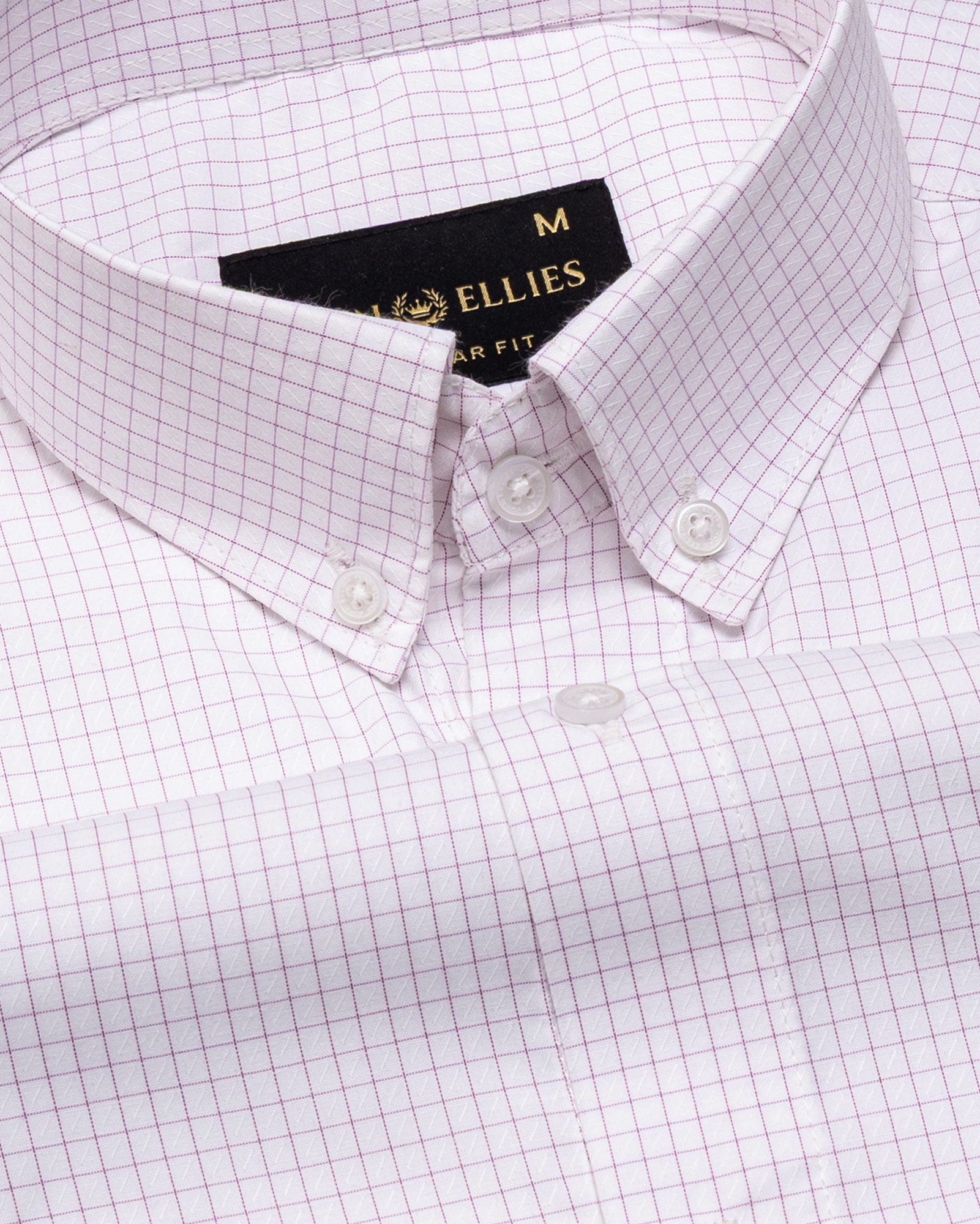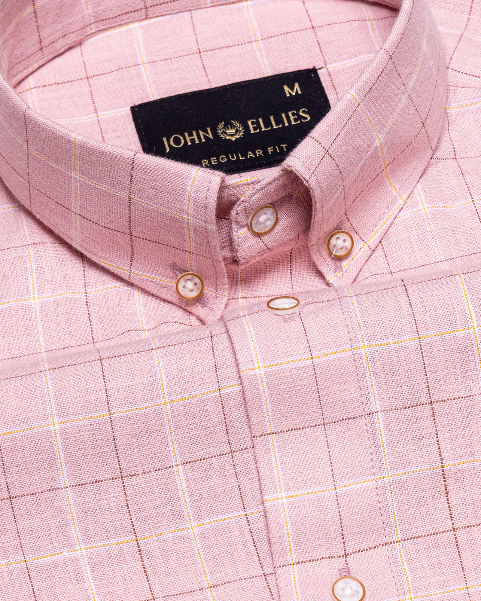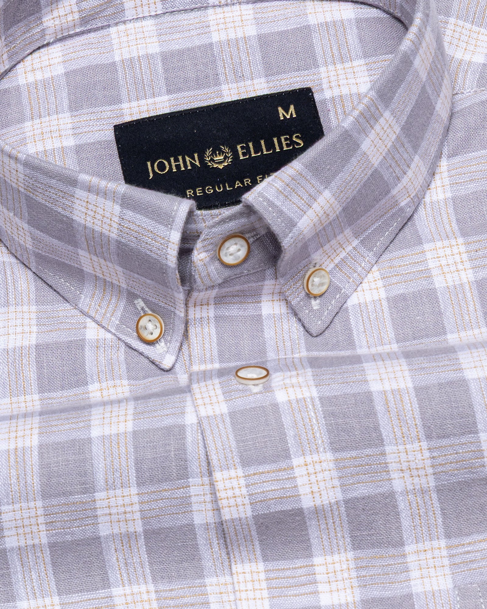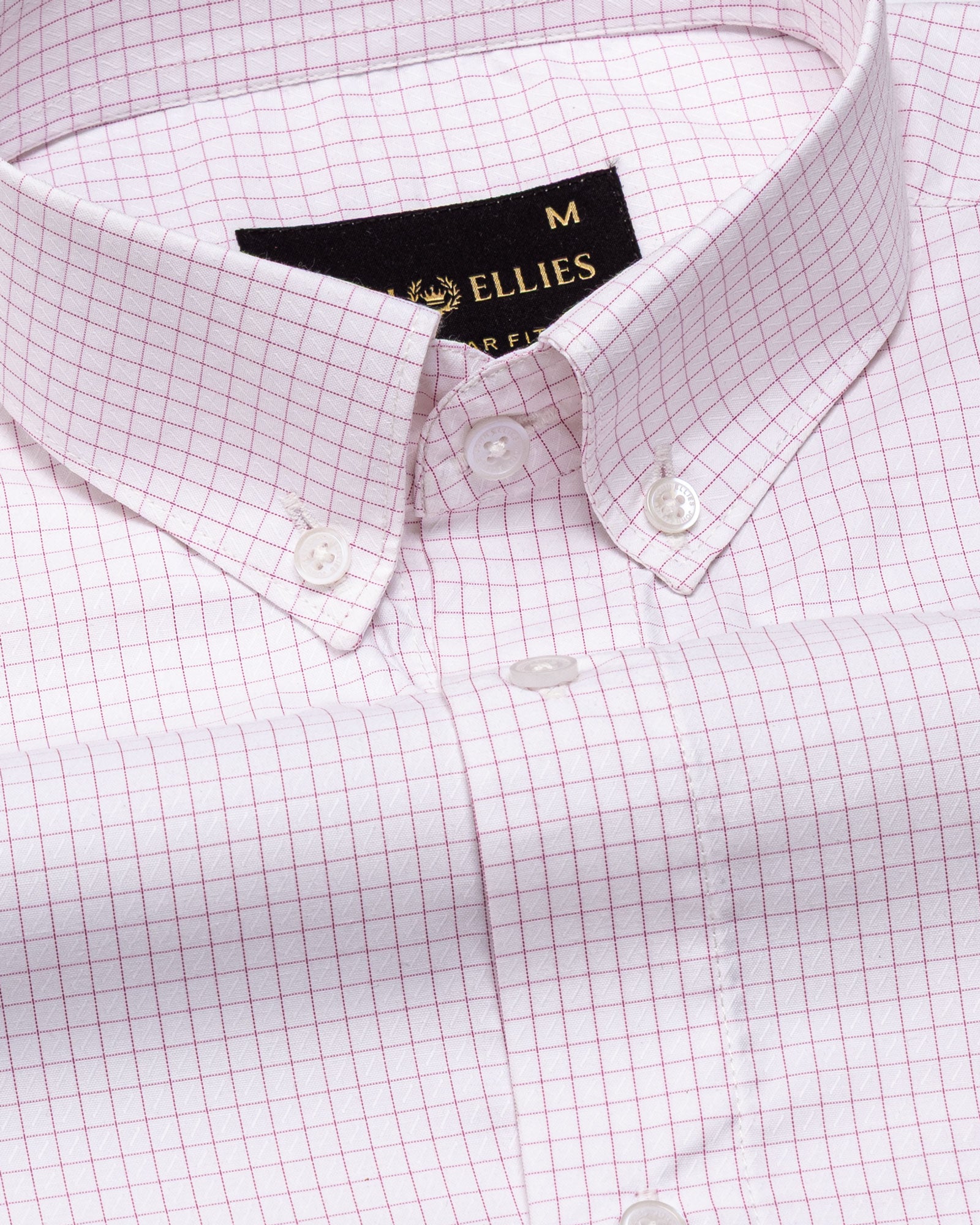 Crafted from textured cotton fabric, it features a subtle weave that enhances the check pattern’s dimension. The fabric feels soft yet substantial, offering breathability, shape retention, and a rich surface character that grows more refined over time.