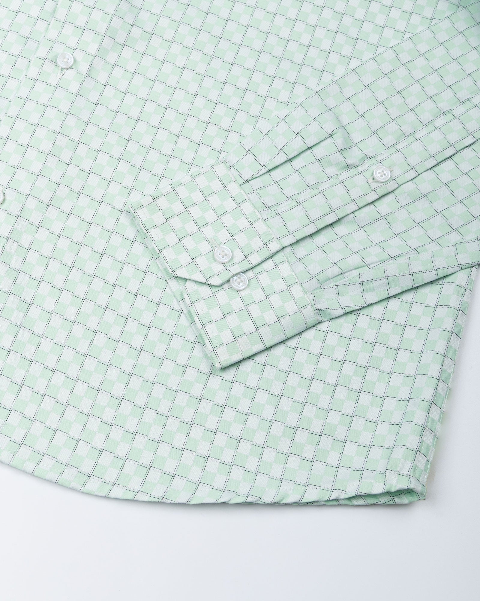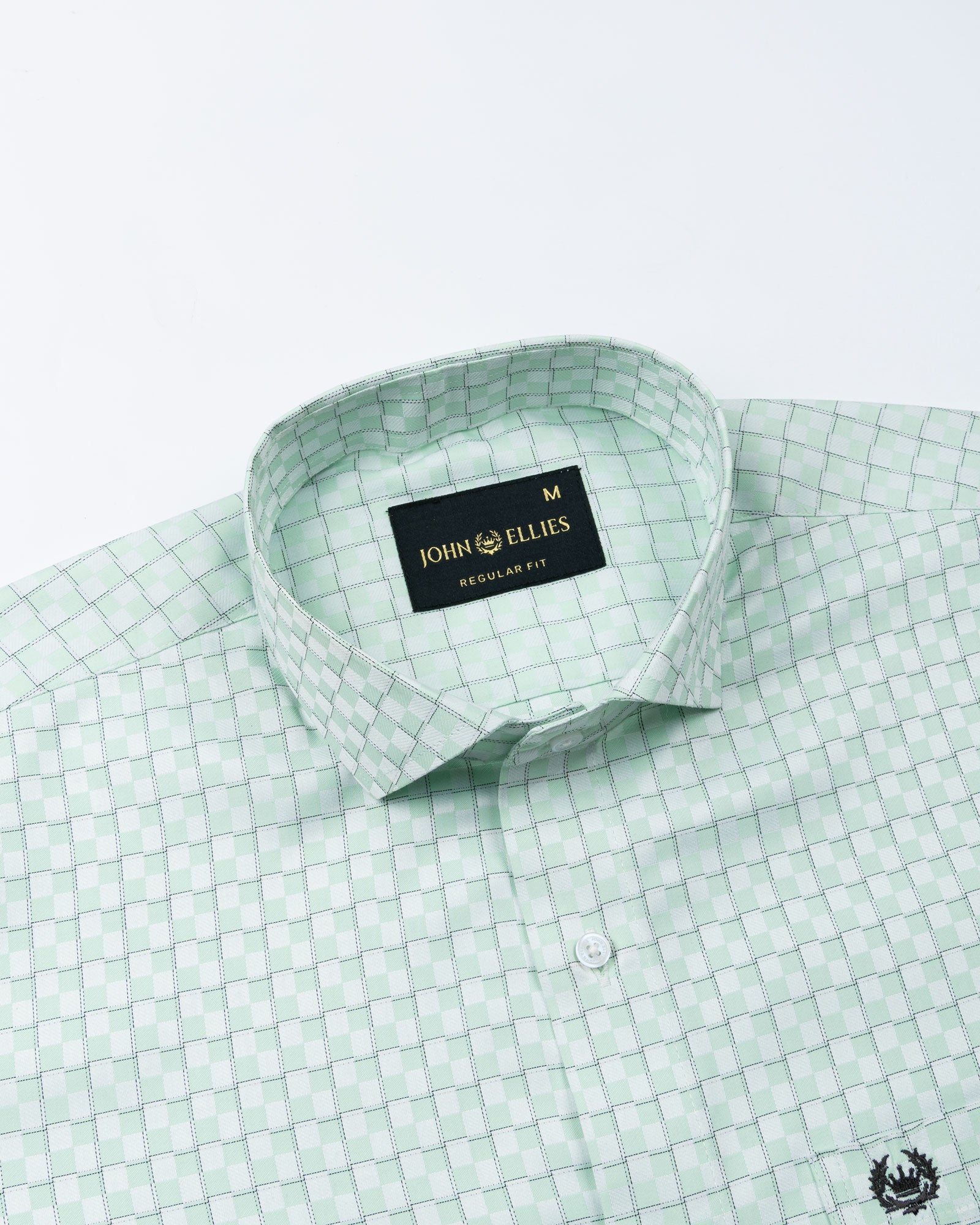 A sophisticated lime shirt tailored with a sharp cutaway collar that enhances its modern silhouette. The subtle check pattern is elevated with a textured cotton weave, giving the fabric depth and character. Designed in a regular fit with matching buttons and precisely finished cuffs.