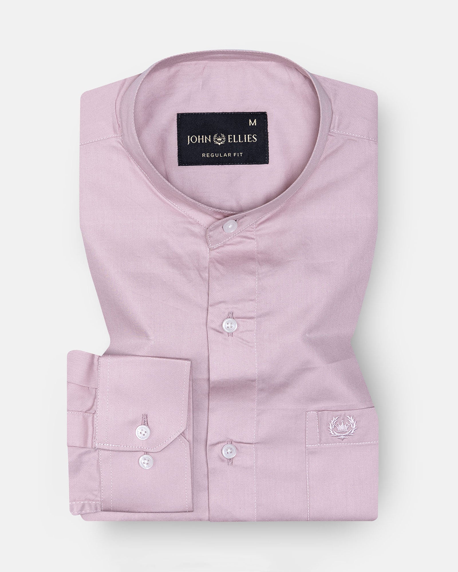Arden Pink Plain Mandarin Giza Cotton Shirt - John Ellies