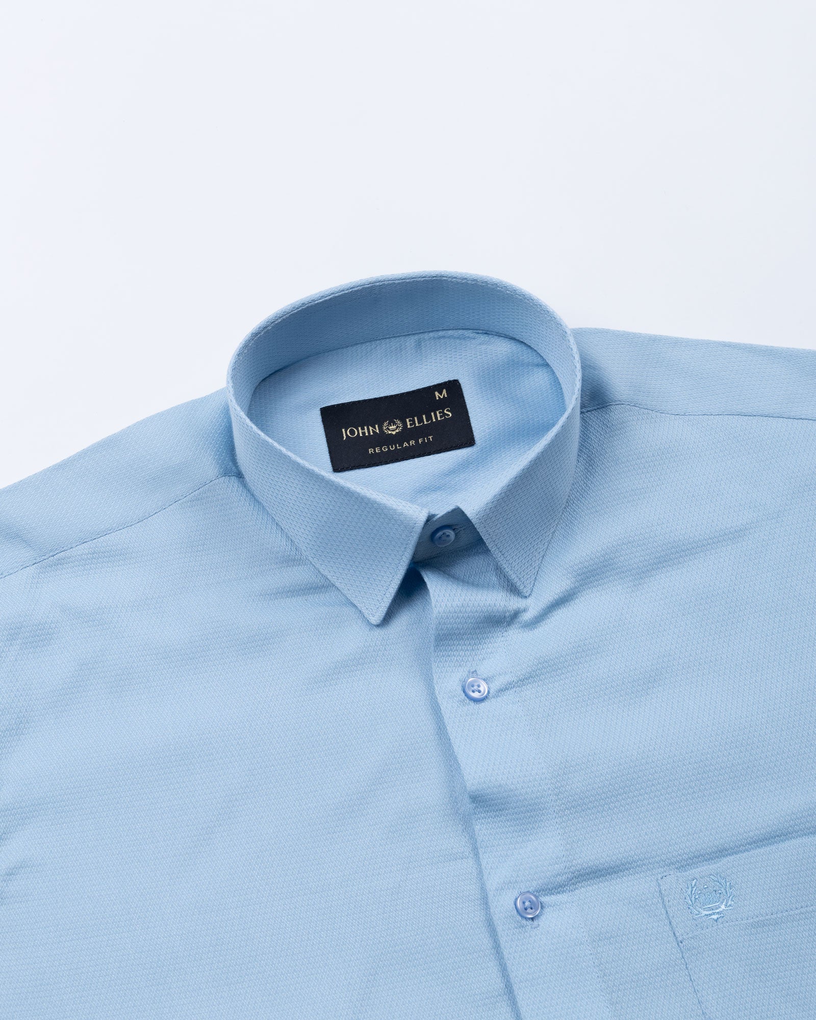 This textured cotton shirt brings a refined sense of character with its structured form and clean finish. Designed with a straight front pocket and classic button layout, it carries a confident look suited for both formal and off-duty wear.