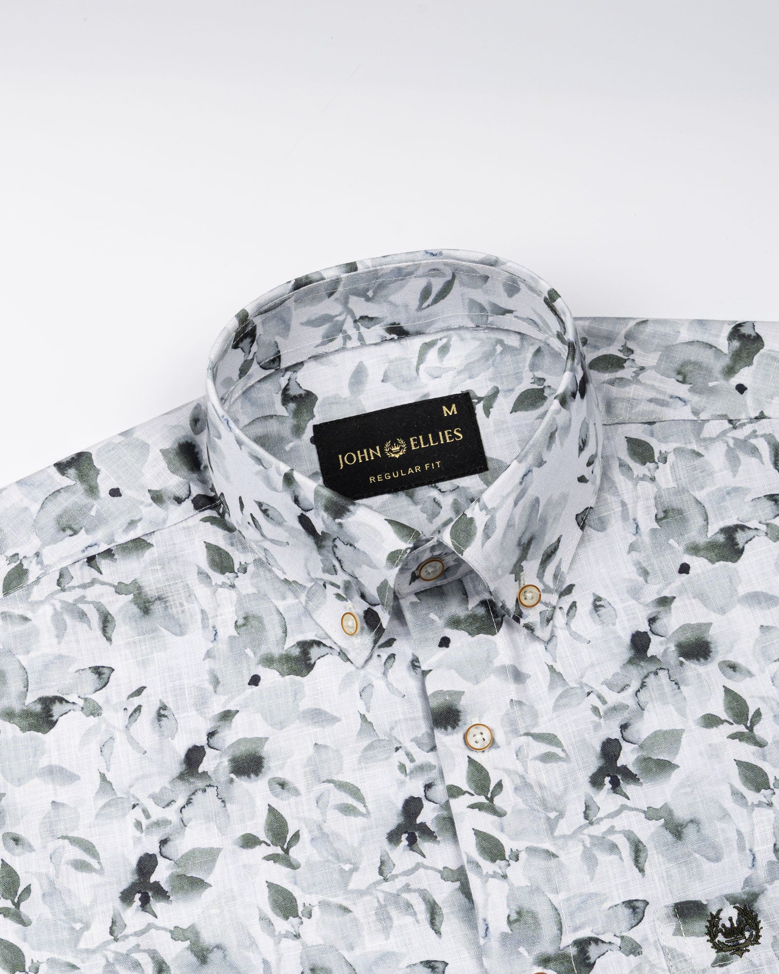 Dyncus Green Floral Printed Linen Shirt - John Ellies