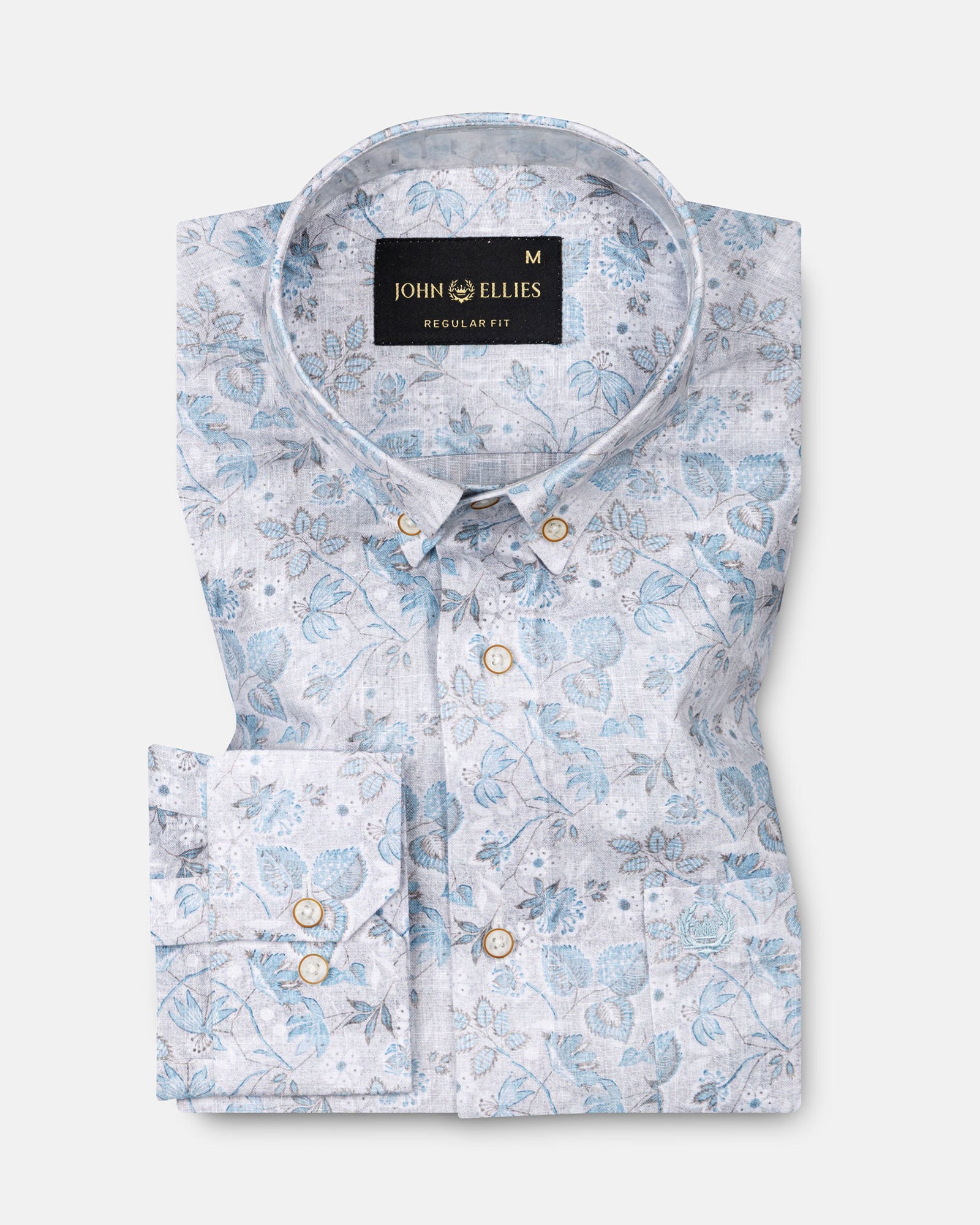 This shirt brings a refined sense of ease with its soft floral pattern laid over a calm, airy base. The button-down collar adds a structured edge, keeping the look balanced and wearable, while the gentle contrast buttons and clean finishing enhance its understated elegance. It feels relaxed yet intentional perfect for days when you want style without effort.
