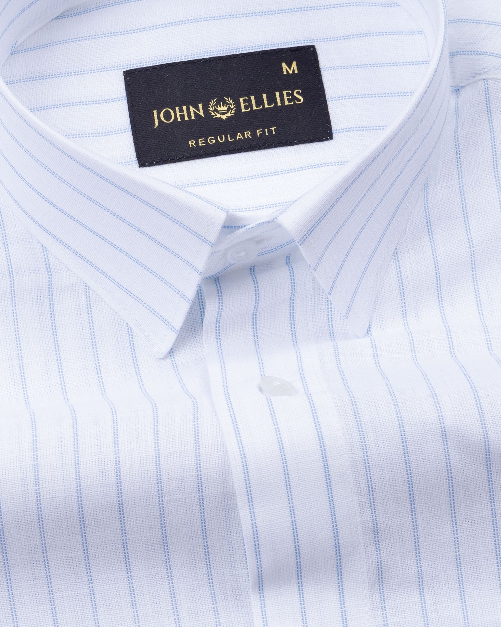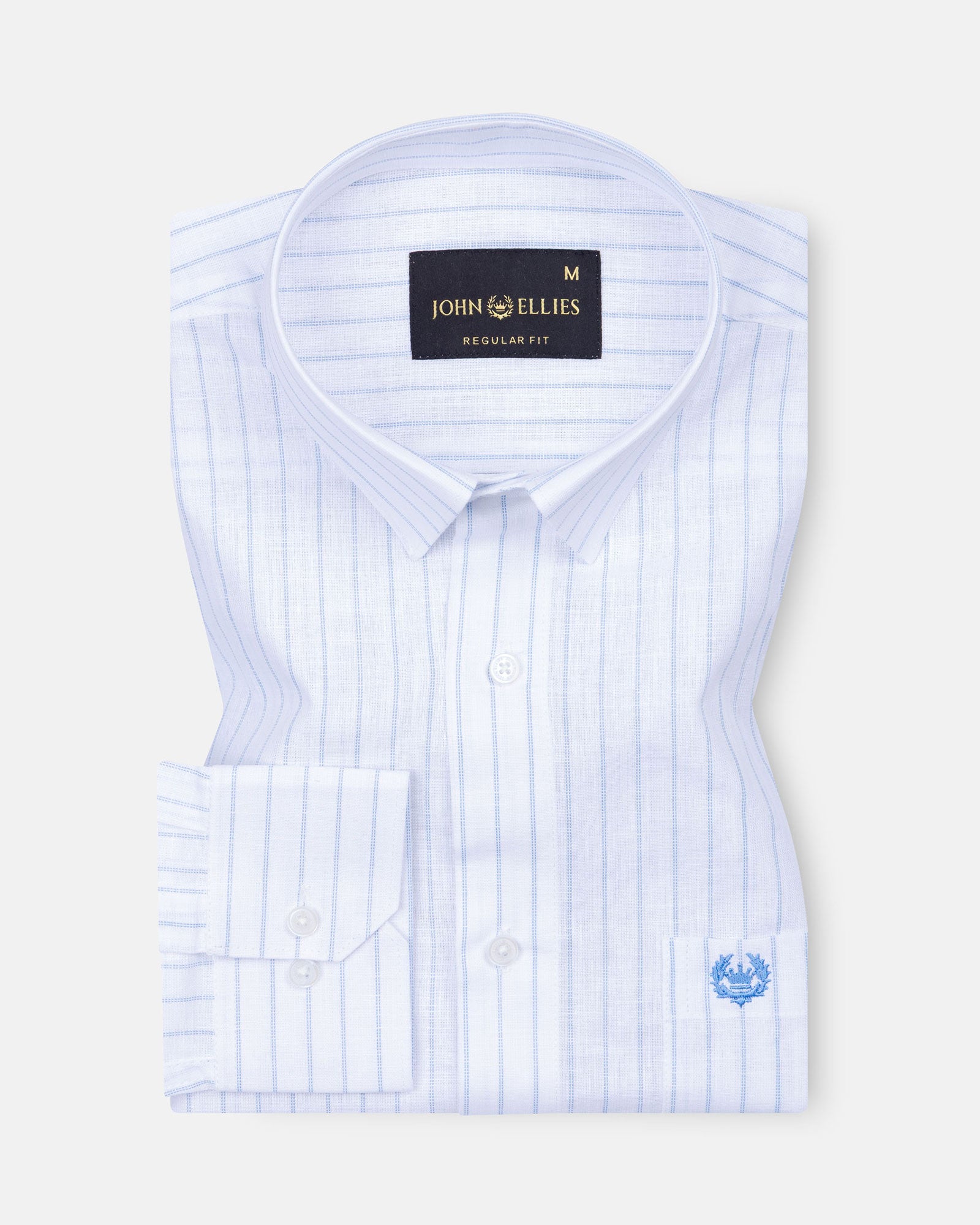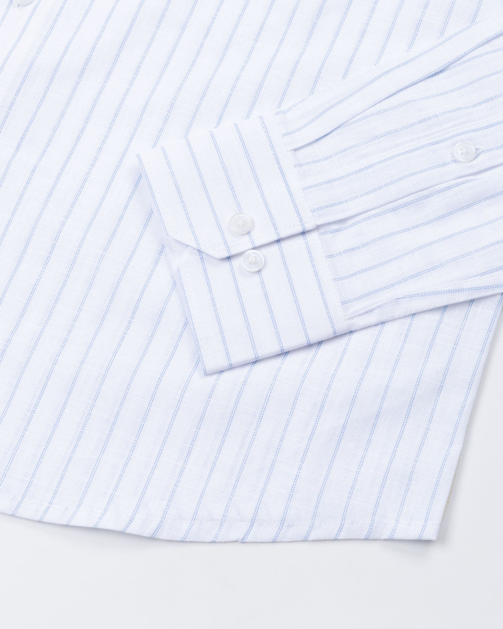 This striped linen shirt offers a relaxed yet refined aesthetic. Designed with a front pocket, classic collar, and button-up front, it delivers effortless style and comfort ideal for casual days or dressed-up moments with an easy, natural charm.