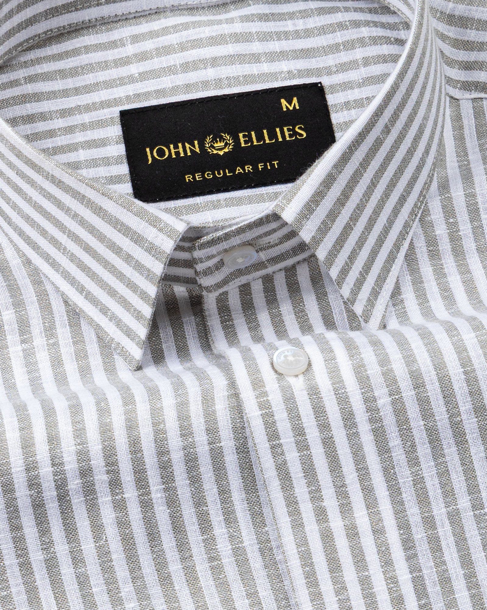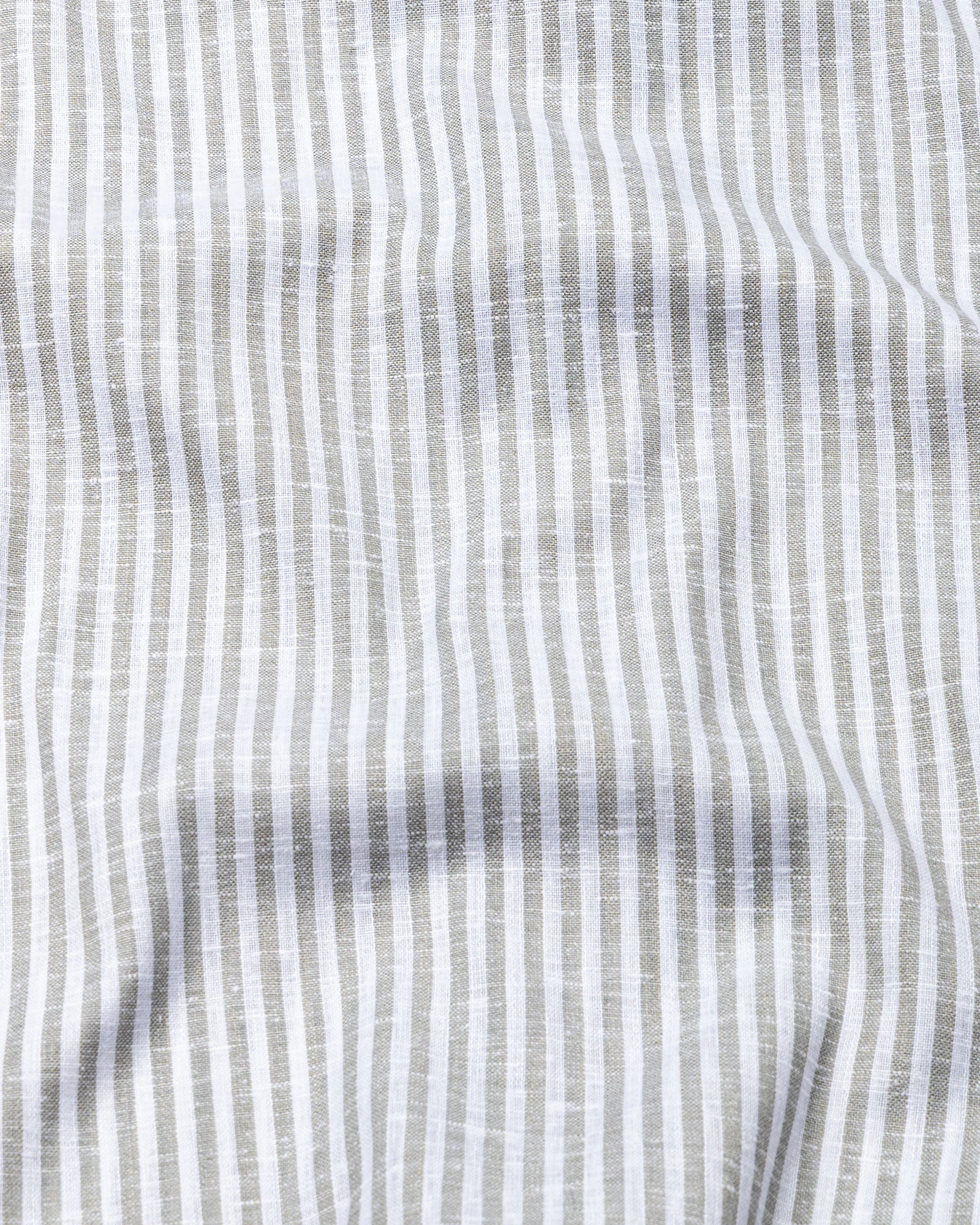 This striped linen shirt presents a refined, effortless look with a naturally relaxed character. The balanced stripe layout adds structure, while the well-shaped collar, clean front, and round cuffs create a smooth, uninterrupted silhouette. Finished with a stitchless appearance, it delivers a neat, modern profile ideal for warm-weather smart dressing.