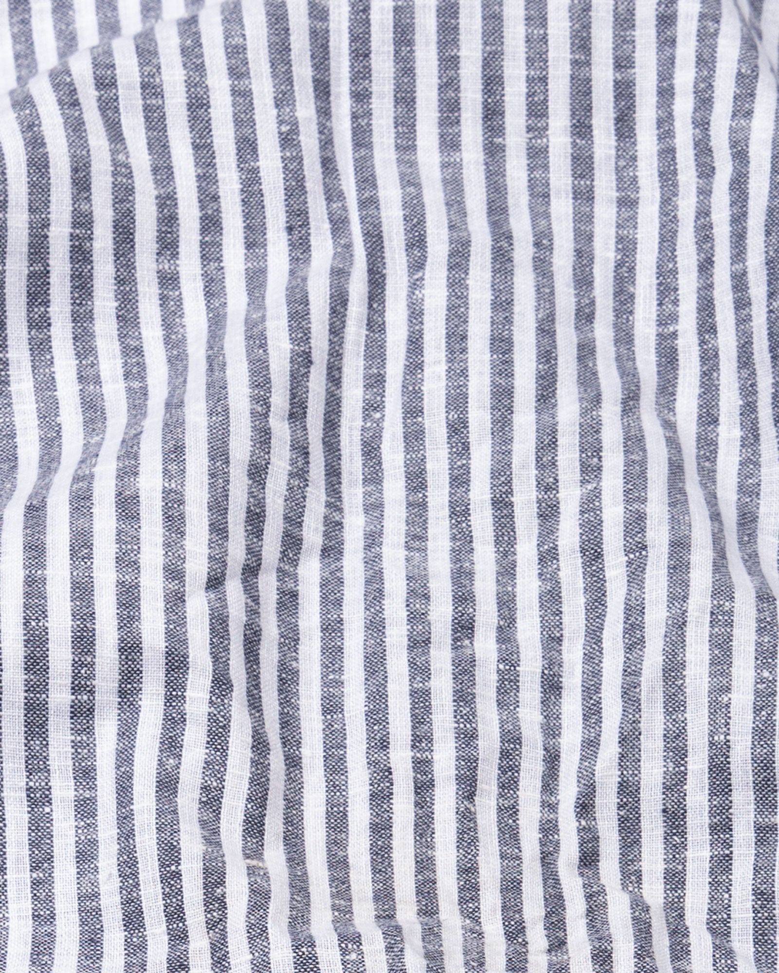 This striped linen shirt presents a refined, effortless look with a naturally relaxed character. The balanced stripe layout adds structure, while the well-shaped collar, clean front, and round cuffs create a smooth, uninterrupted silhouette. Finished with a stitchless appearance, it delivers a neat, modern profile ideal for warm-weather smart dressing.
