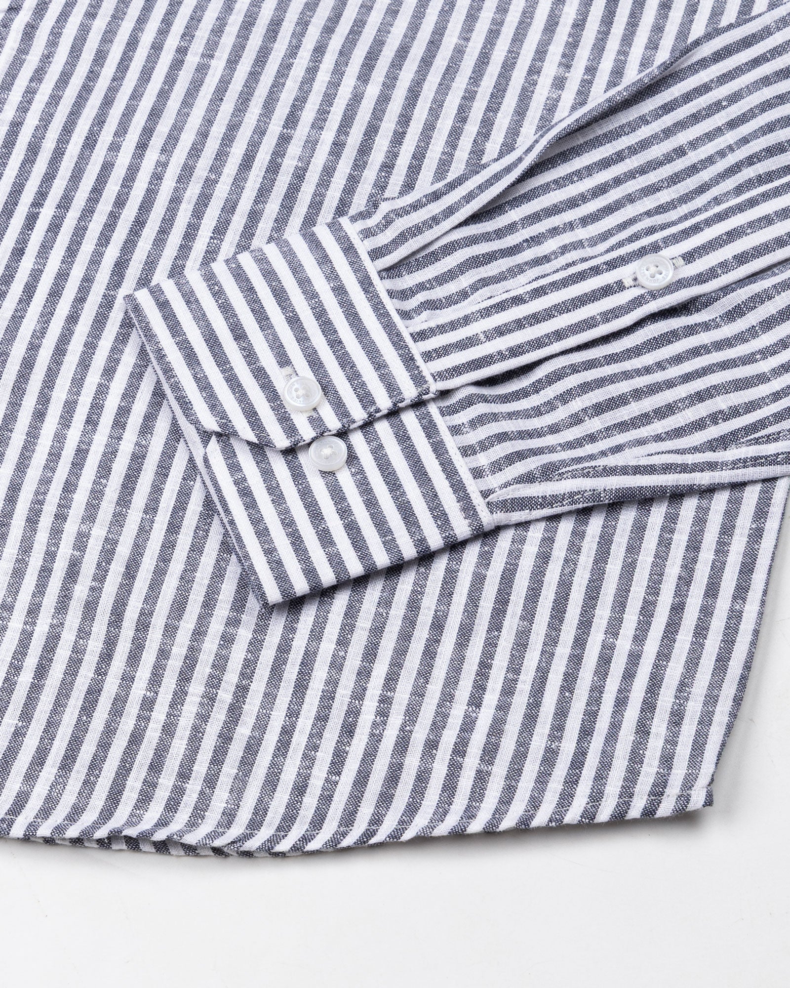 Gion Navy Blue Stripes Linen Shirt