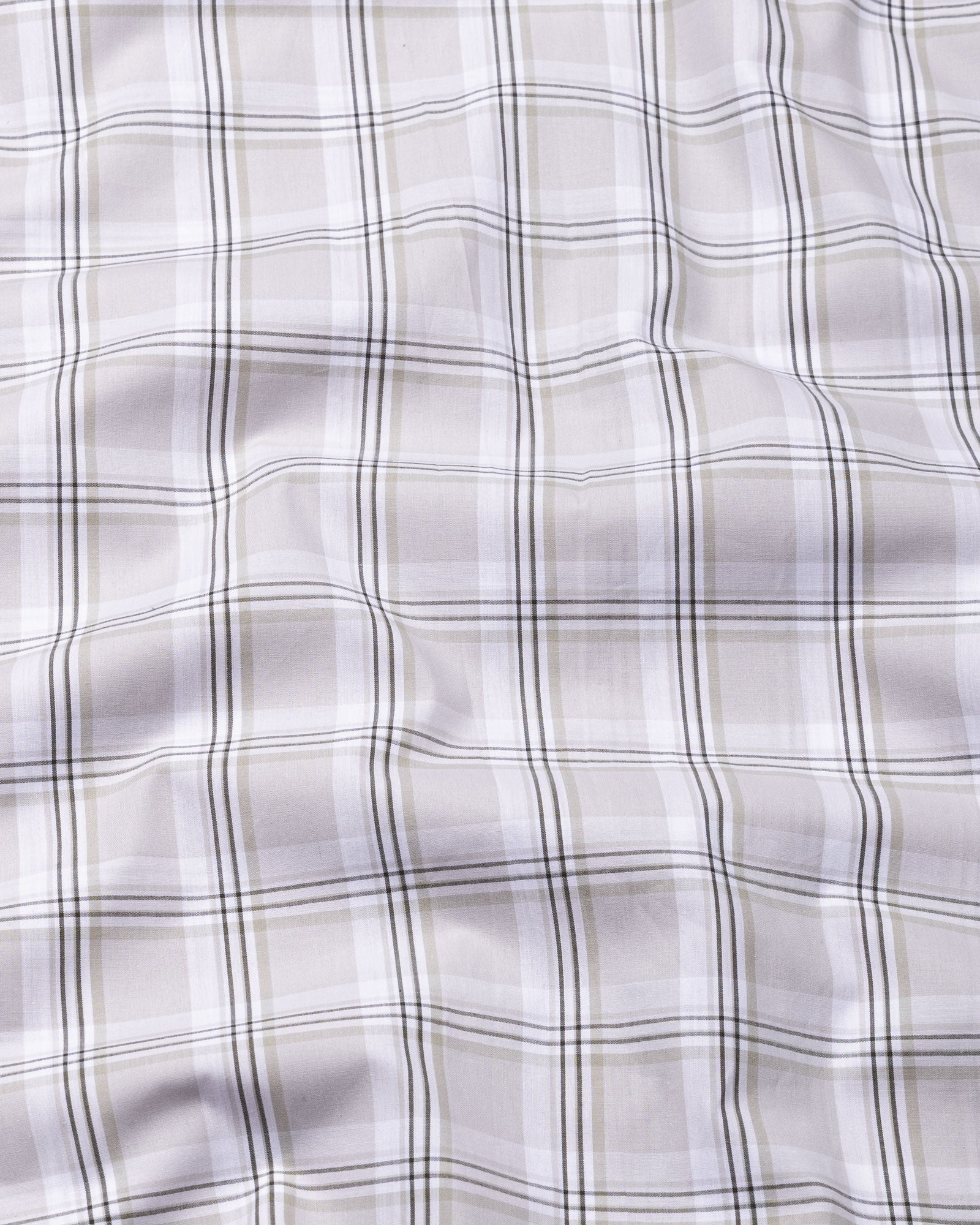 Crafted from cotton, the fabric offers breathable comfort with a stable, easy feel. It sits lightly on the body, supports the check pattern with clarity, and maintains a neat, polished appearance through extended wear.