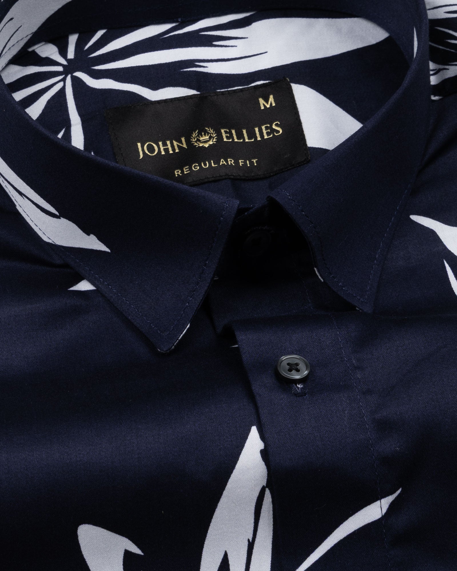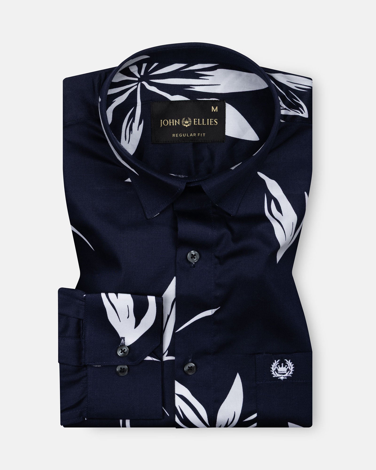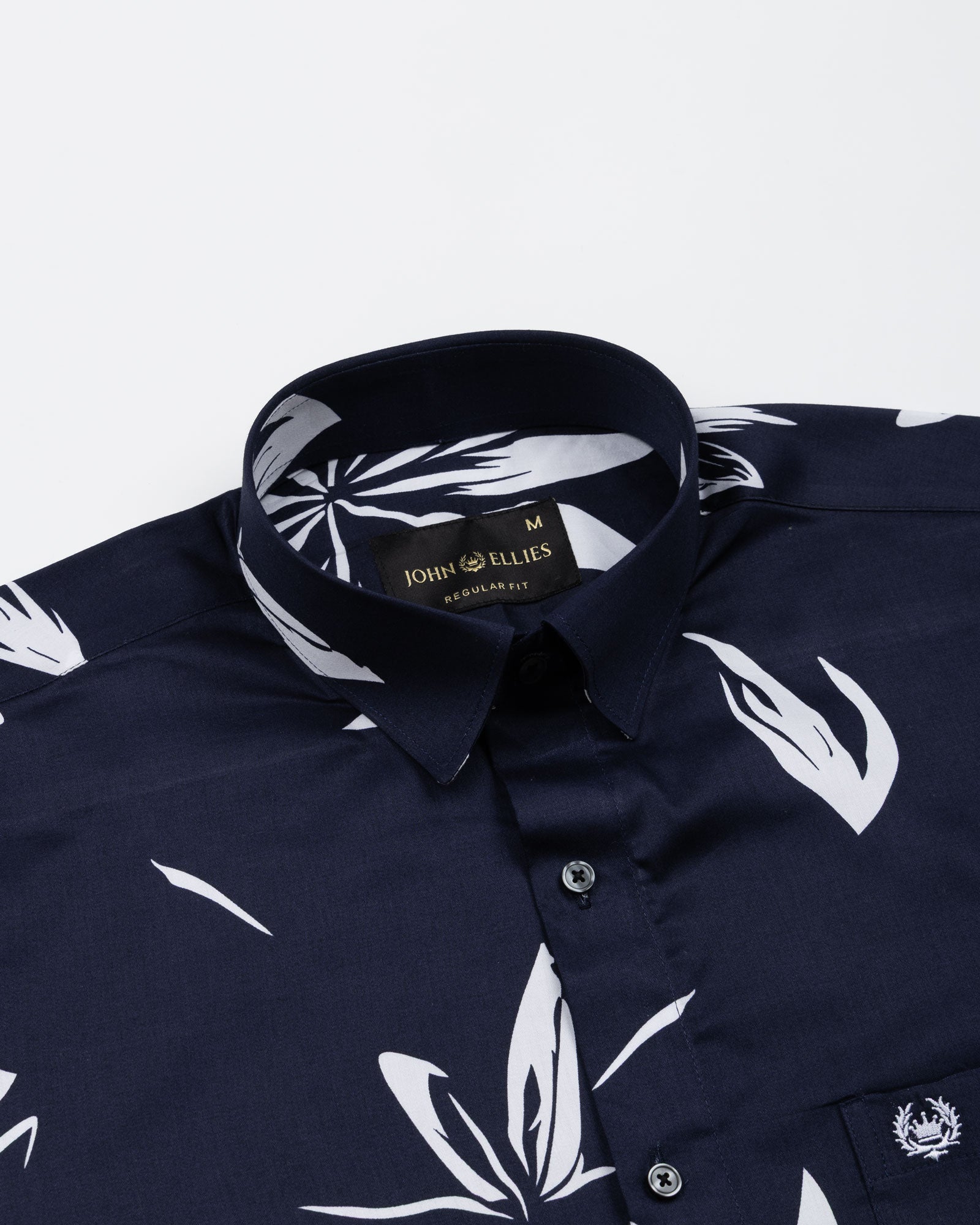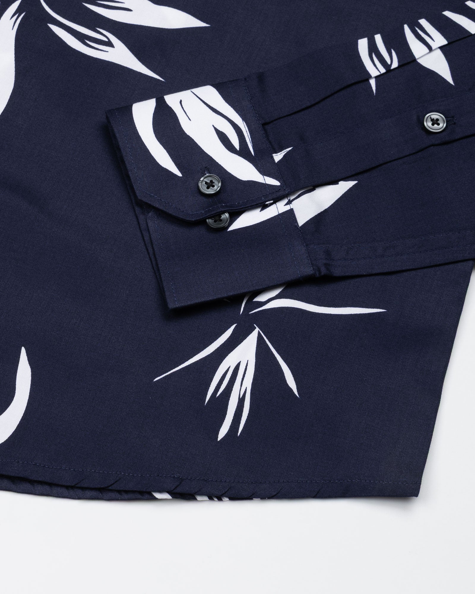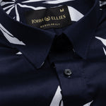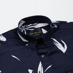 Iearus Navy Blue Leaf Cotton Printed Shirt