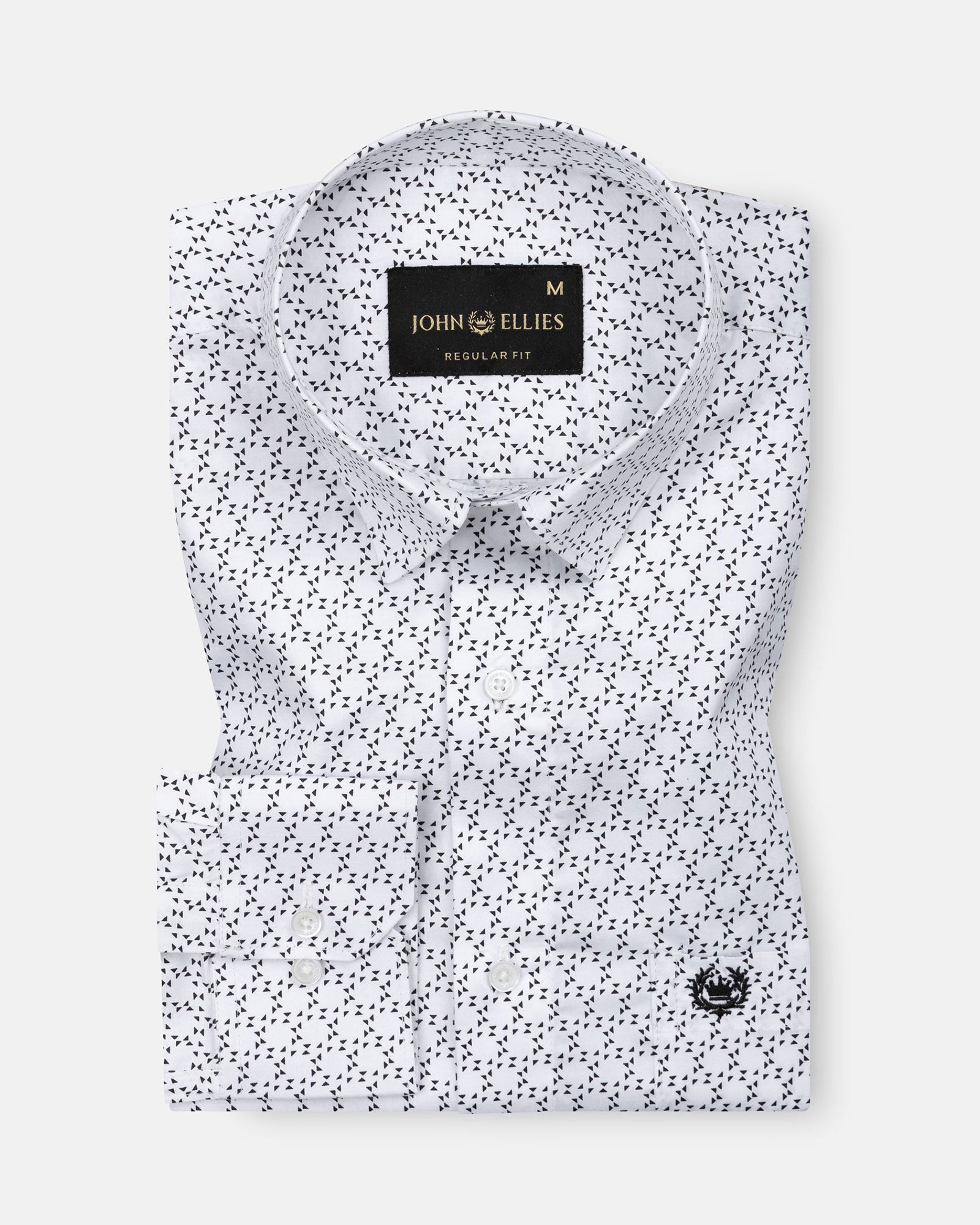 Iearus White With Black Triangle Cotton Printed Shirt