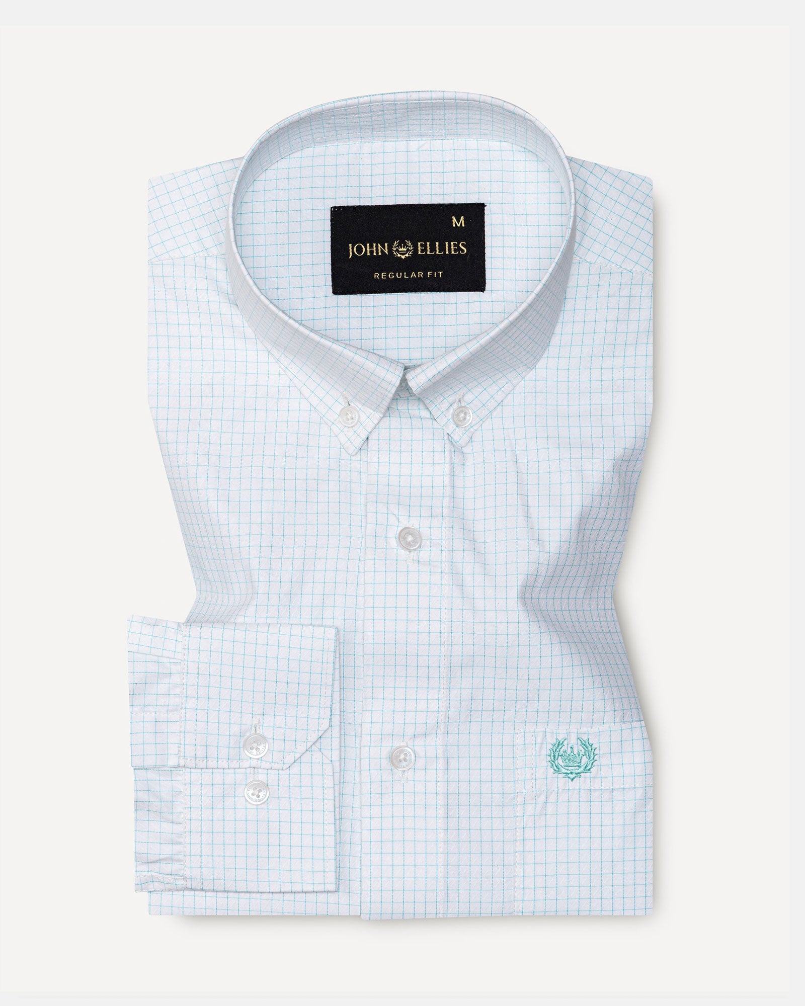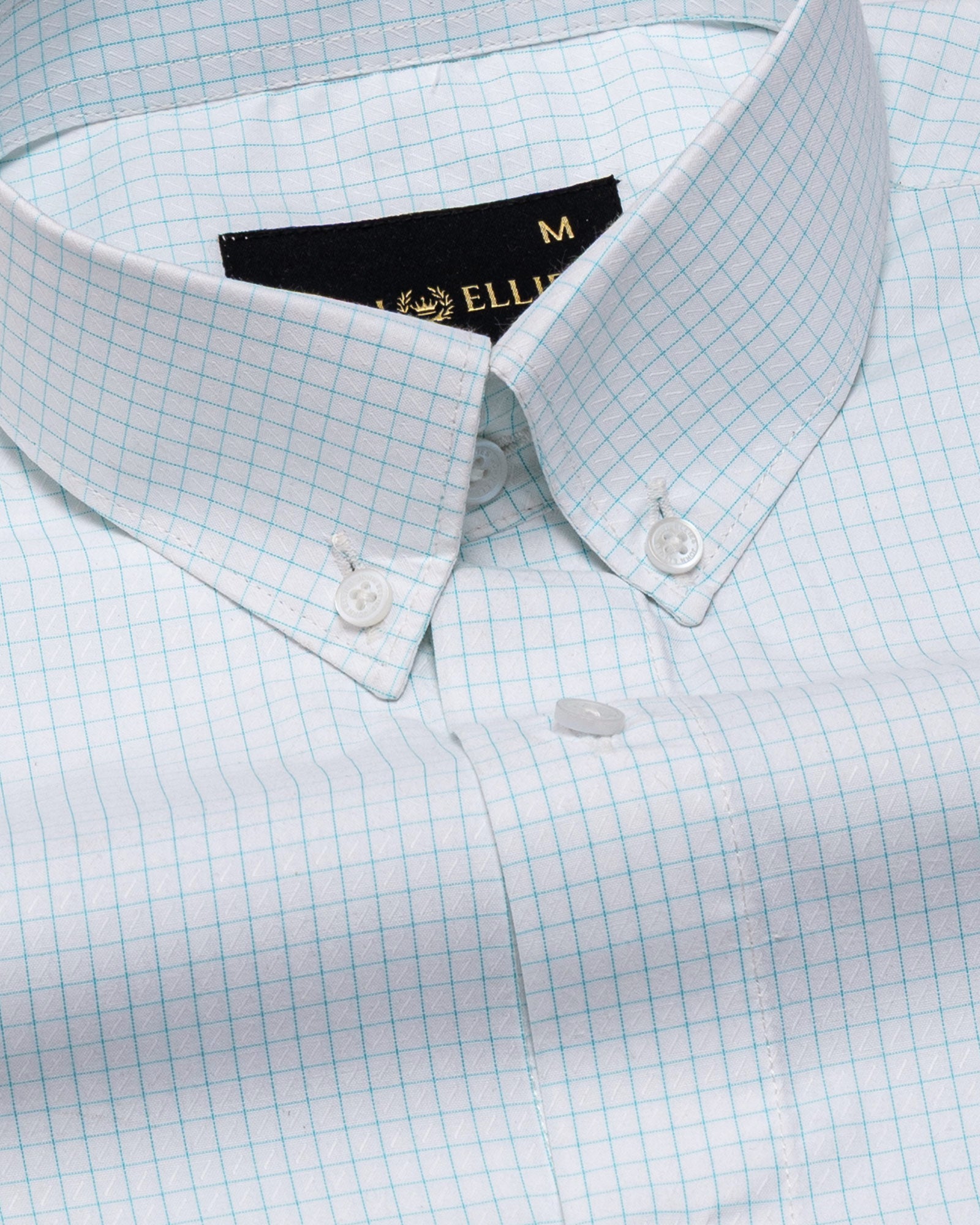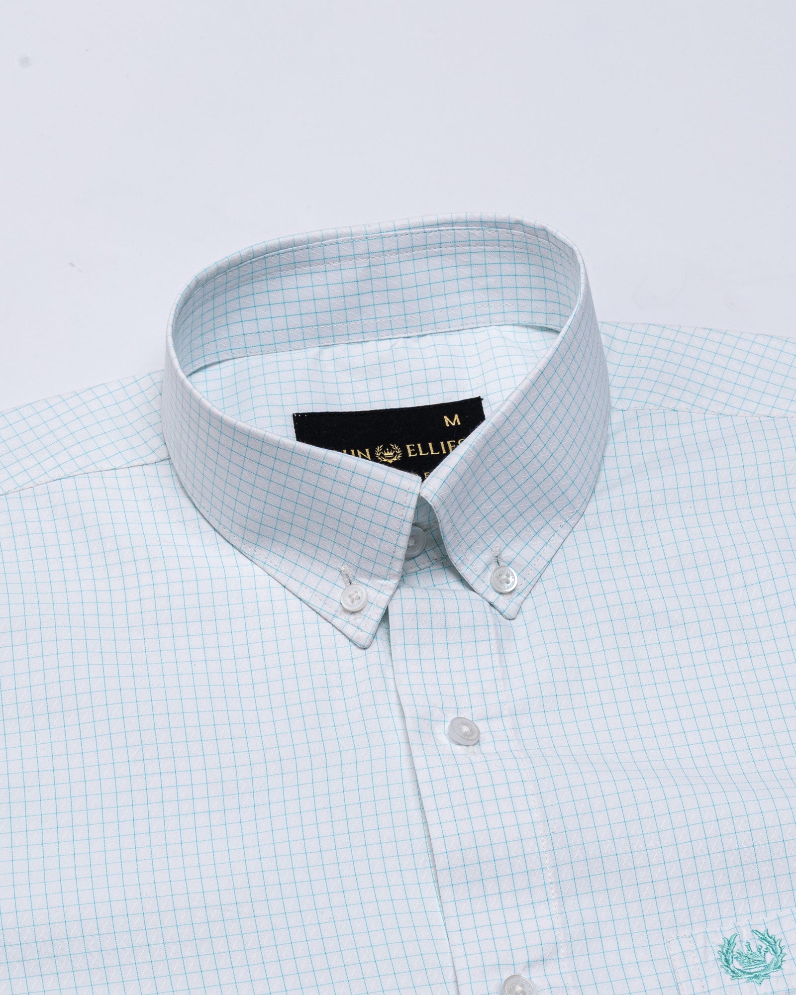 A refined button-down shirt inspired by understated heritage dressing. The crisp white base is detailed with fine micro-checks that create a subtle pattern without overpowering the look. Designed with a button-down collar, clean placket, tonal buttons, structured cuffs, and the signature embroidered crest that completes the piece with a distinguished finish.
