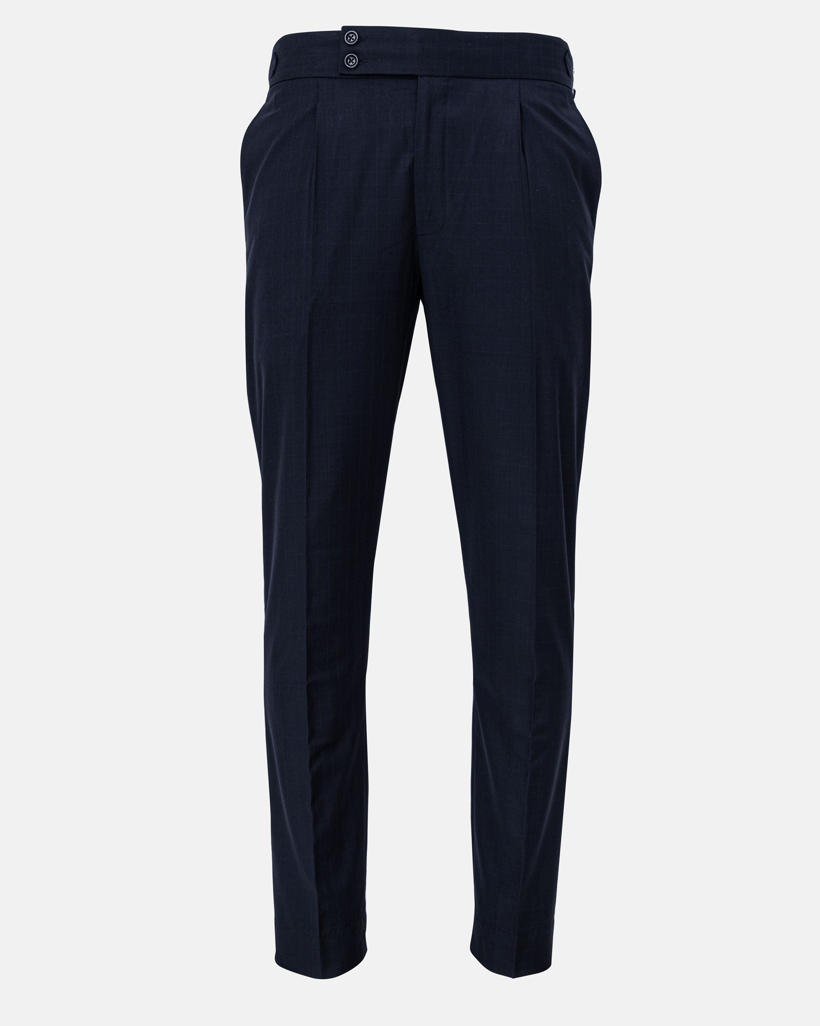 Neux Navy Blue Checked Formal Single Pleated Italian Pant - John Ellies