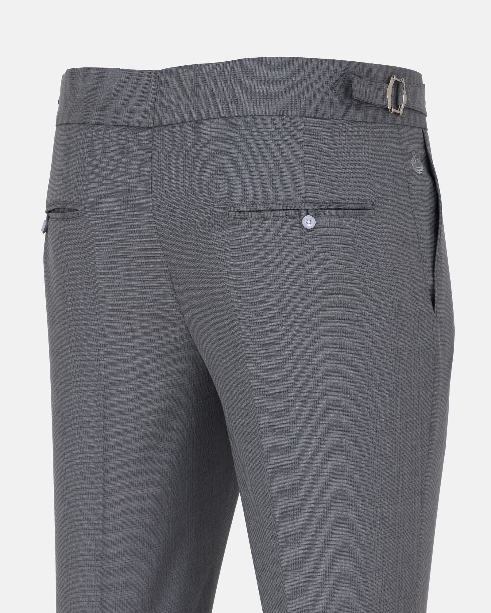 Vittorio Silver Checked Formal Single Pleated Italian Pant - John Ellies