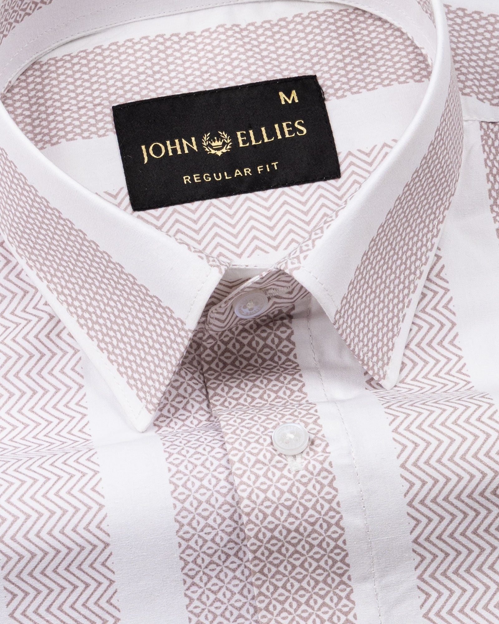 This formal shirt features a refined vertical geometric stripe pattern that adds depth without overpowering the look. Designed with a structured cuff collar, clean front placket, and premium white buttons, it offers a sharp, well-balanced silhouette.